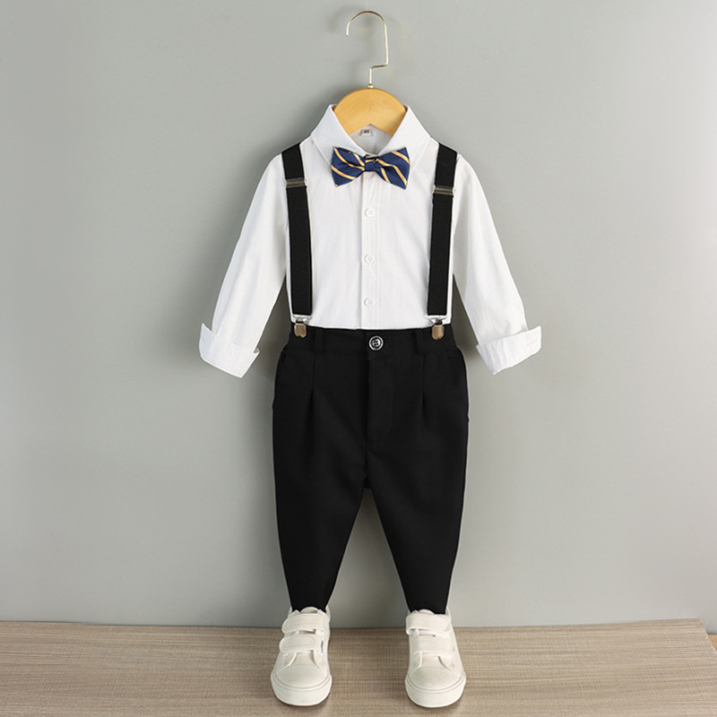 • 긴 소매 바지 멜빵 줄무늬 나비 넥타이