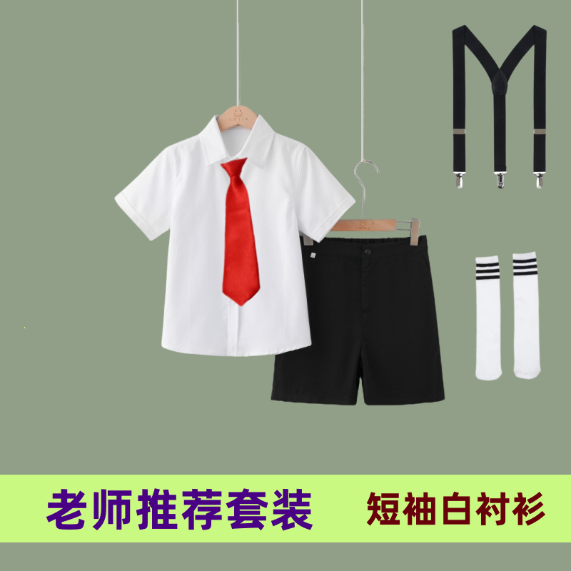 • 반팔 반바지, 멜빵, 검은색 넥타이, 무료 양말