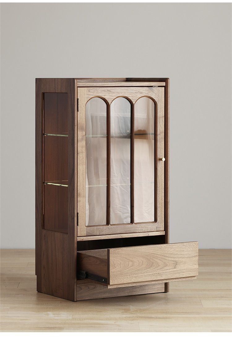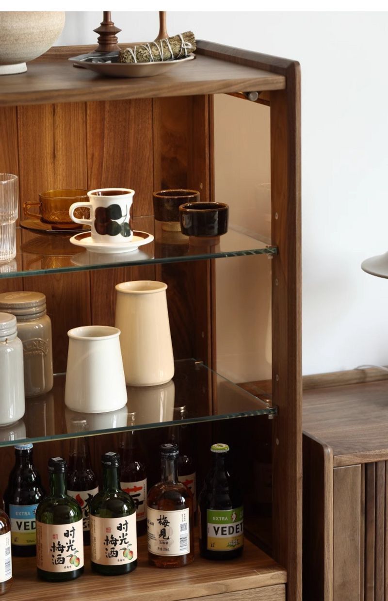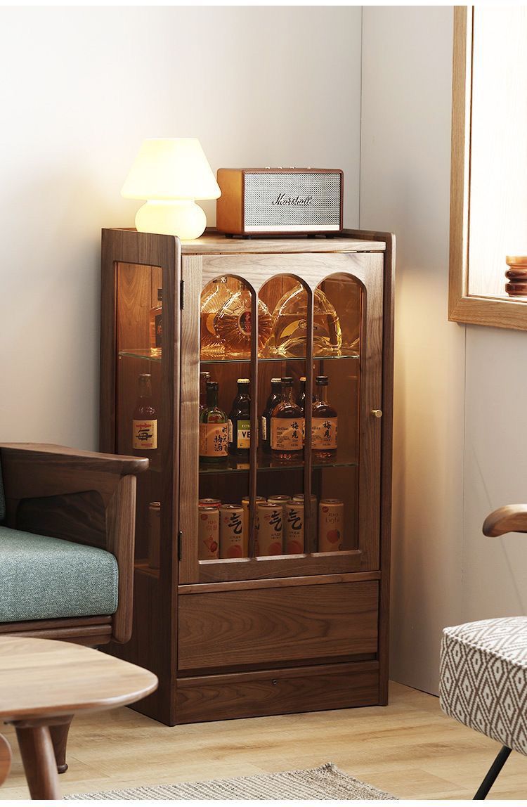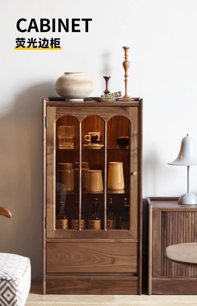 북유럽 복고풍 와인 캐비닛 검은 호두 색상 찬장 사이드 캐비닛 수납 단단한 나무 벽 새로운 중국 스타일 미국의 가벼운 고급 가구스토어 가기