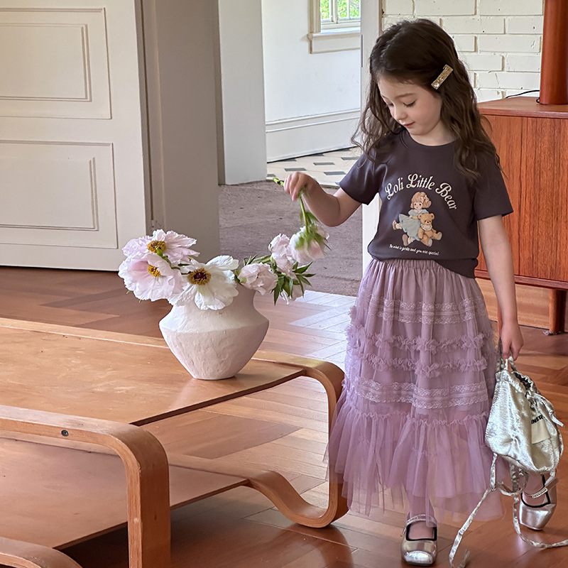엘모 베이 베이 어린이 귀여운 곰 반팔 2025 여름 어린이 착용 여자 한국 스타일 캐주얼 서양식 티셔츠 반소매