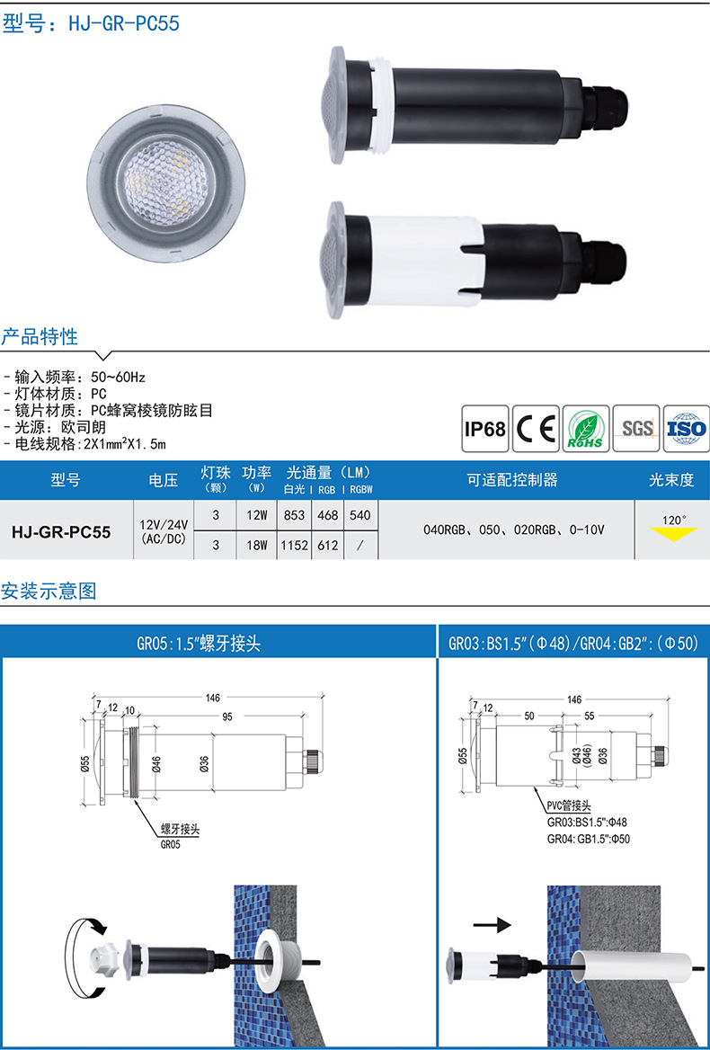 유럽 중동 대외 무역 1.5inch PVC 파이프 인터페이스 필름 풀 수중 조명 LED 다채로운 그라데이션 RGBW 풀 조명