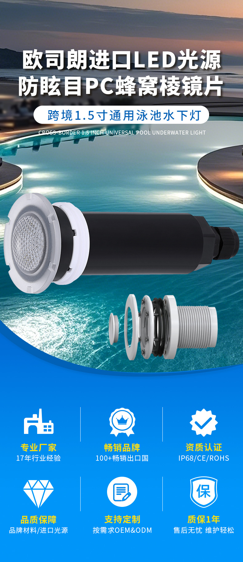 유럽 중동 대외 무역 1.5inch PVC 파이프 인터페이스 필름 풀 수중 조명 LED 다채로운 그라데이션 RGBW 풀 조명스토어 가기