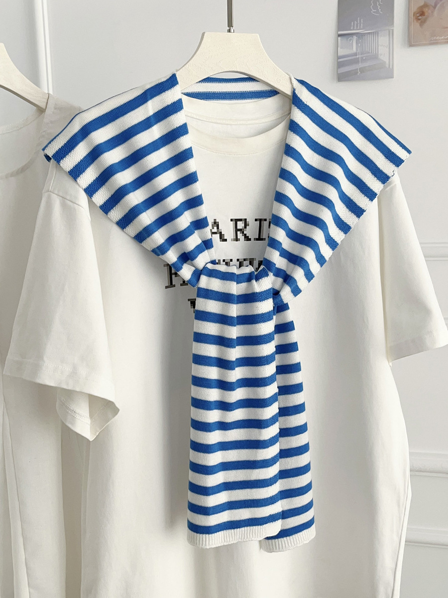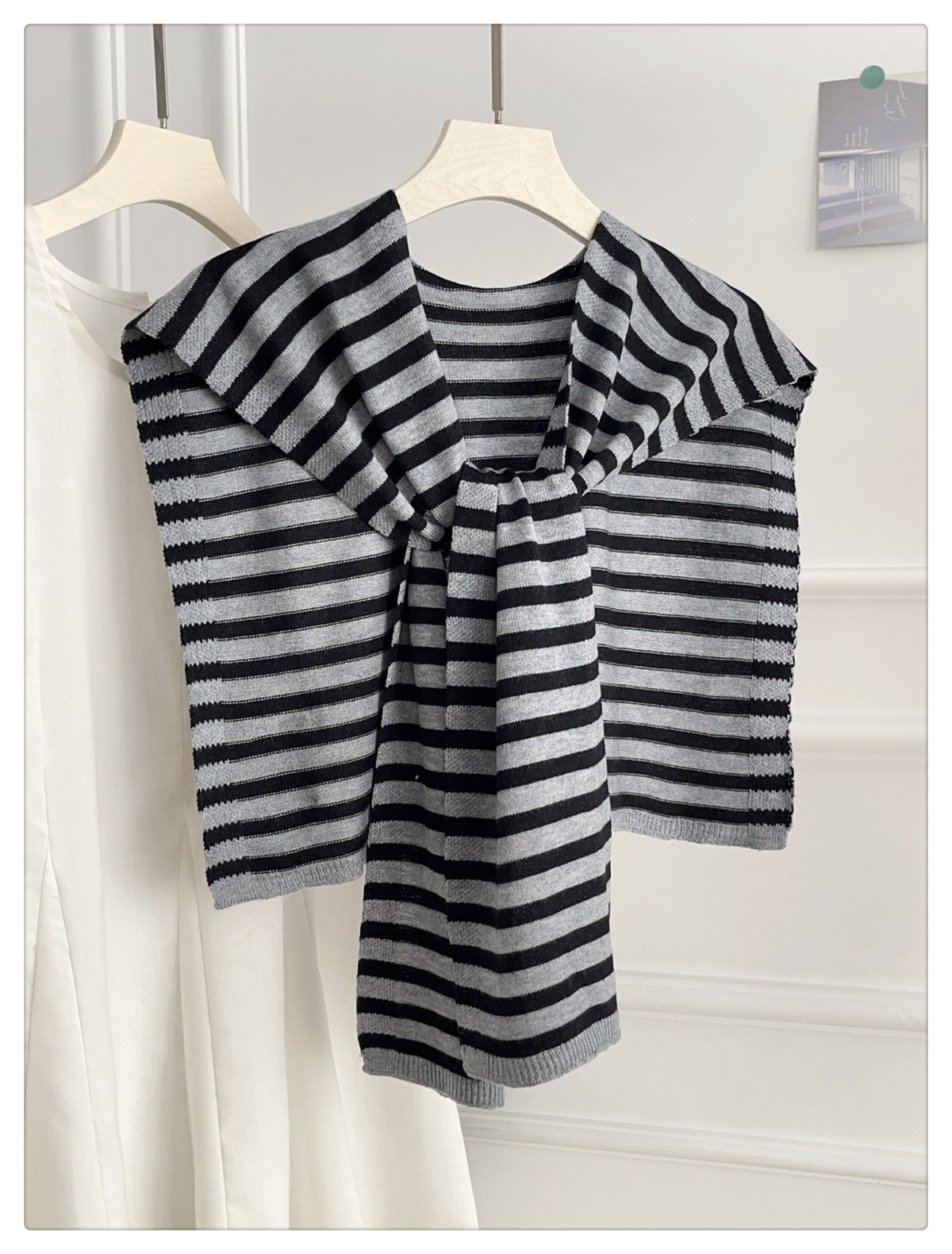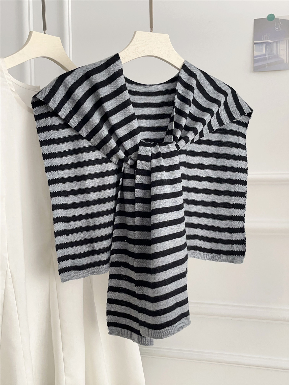 줄무늬 니트 목도리 여성의 봄과 여름 새로운 패션 올 매치 오피스 에어컨 룸 따뜻한 목 보호 작은 양복 조끼