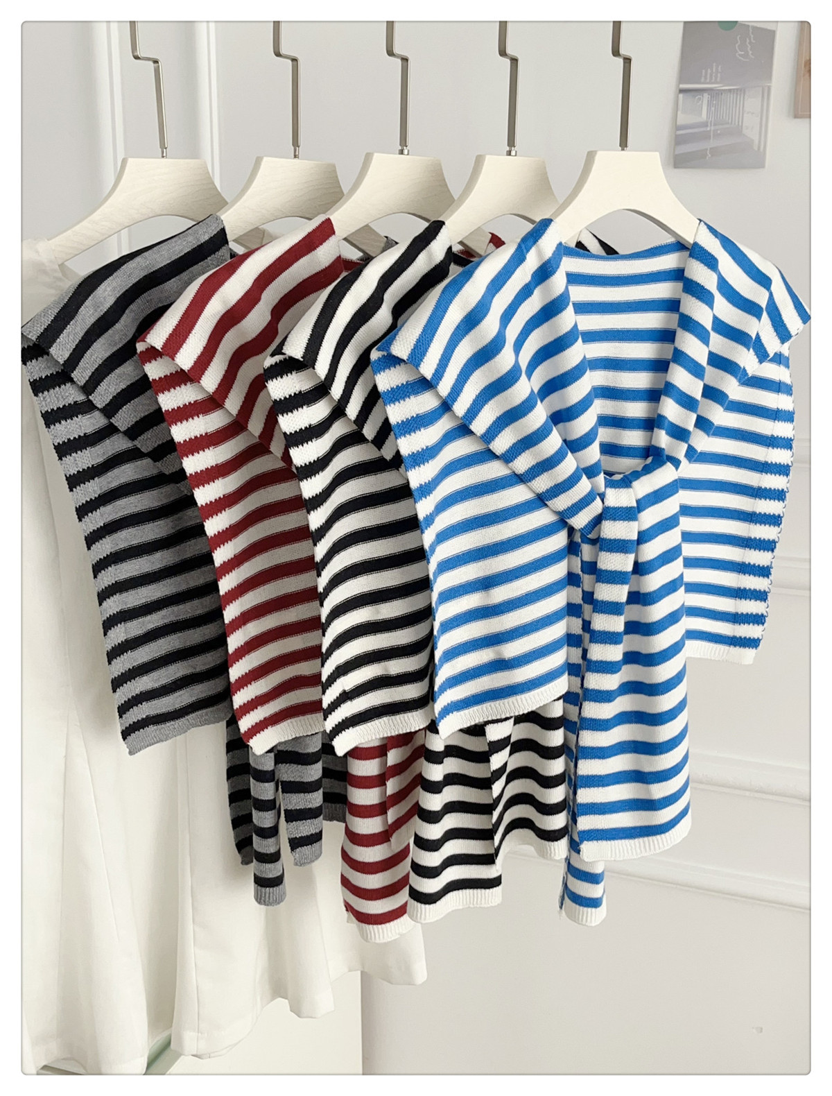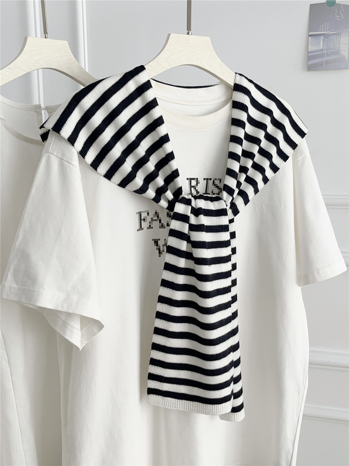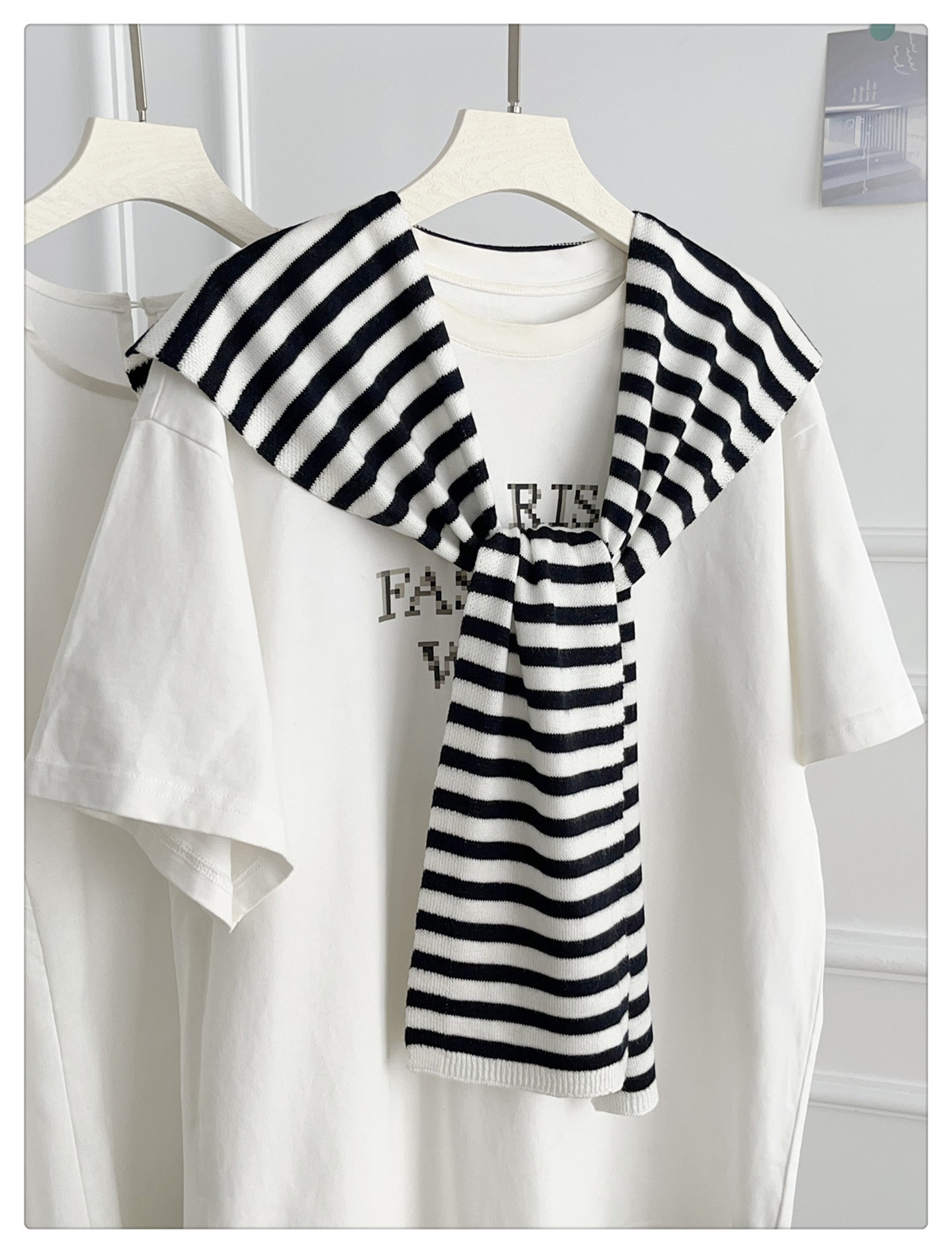줄무늬 니트 목도리 여성의 봄과 여름 새로운 패션 올 매치 오피스 에어컨 룸 따뜻한 목 보호 작은 양복 조끼