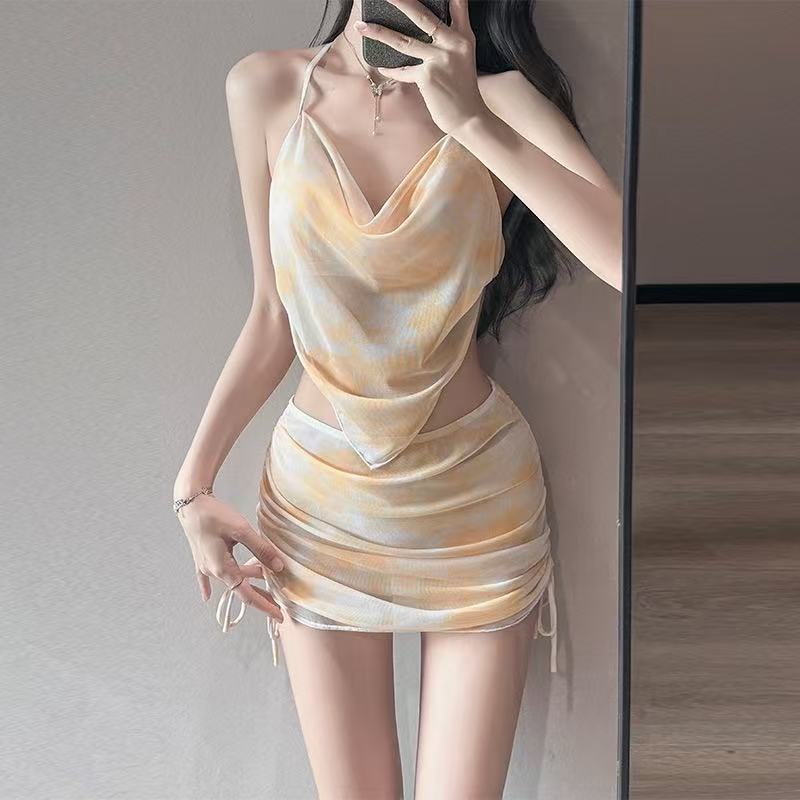 수영복 여성 섹시 비키니 3 피스 세트 순수한 욕망 스타일 해변 휴가 작은 가슴 푸시 업 새로운 2025 요정 스타일
