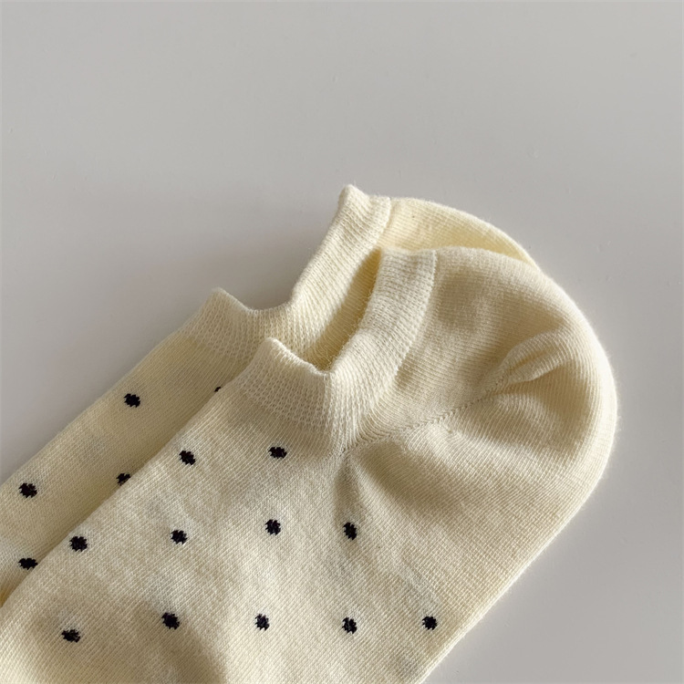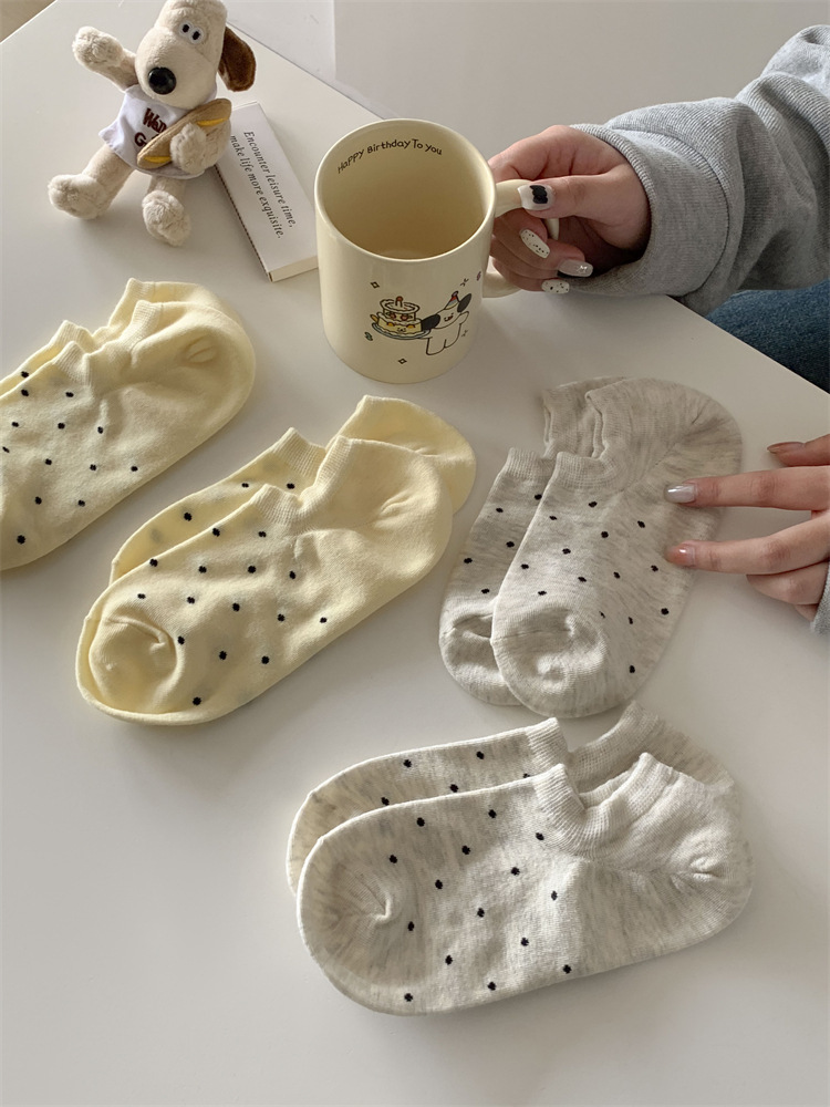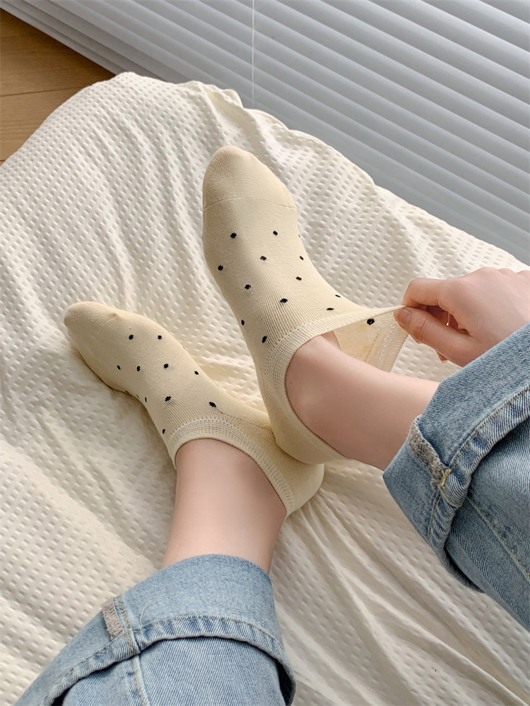 여름 여성을 위한 새로운 일본식 귀여운 트렌디 심플 폴카 도트 양말 얇고 얕은 입이 떨어지지 않는 보이지 않는 보트 양말 짧은 양말스토어 가기
