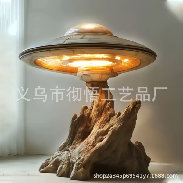 독립 스테이션 국경 간 인기 상품 나무 줄기 베이스가 있는 UFO 램프 나무 줄기 베이스 수지 장식품스토어 가기