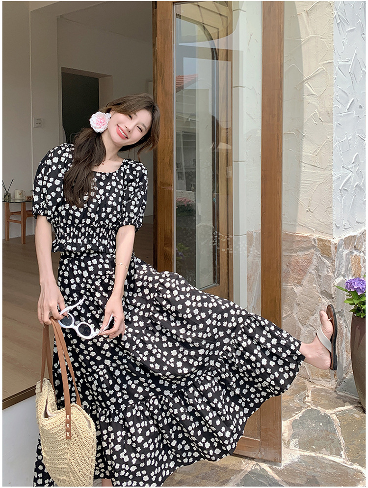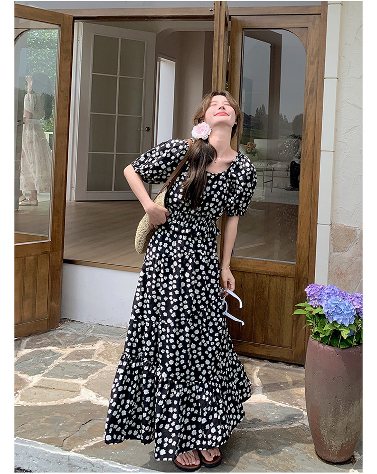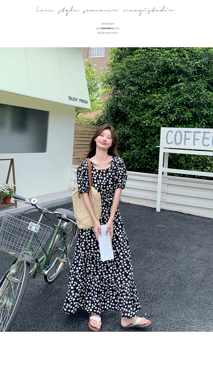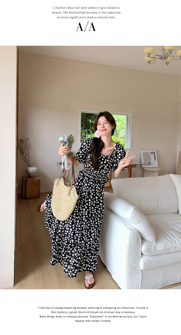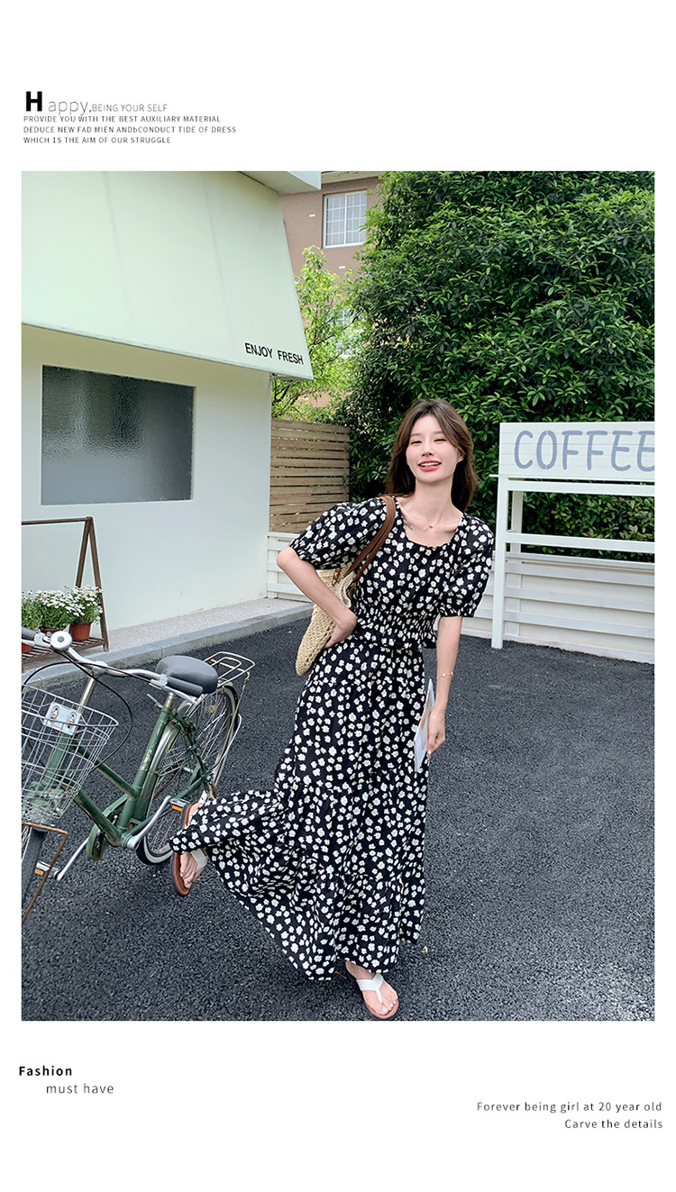리얼 샷 한국 스타일 라이트 성숙한 프랑스 스타일 플로랄 롱 원피스 새로운 패션 타이트 허리 슬리밍 원피스 세트 여성 2025 여름스토어 가기