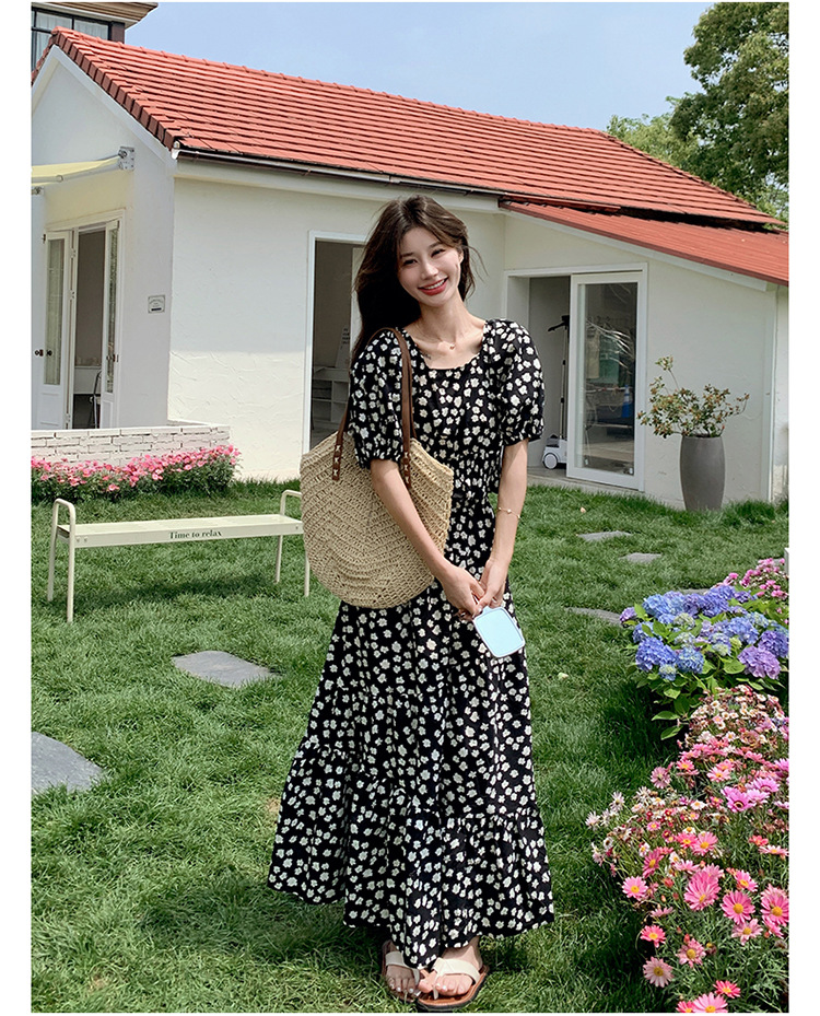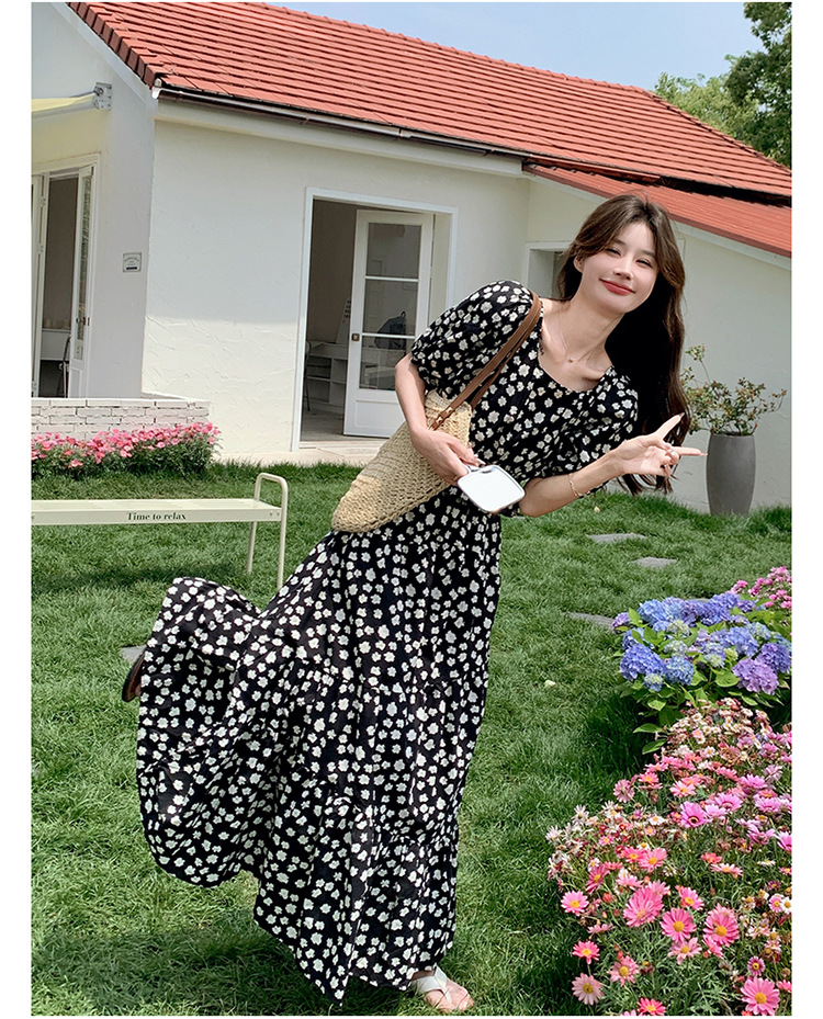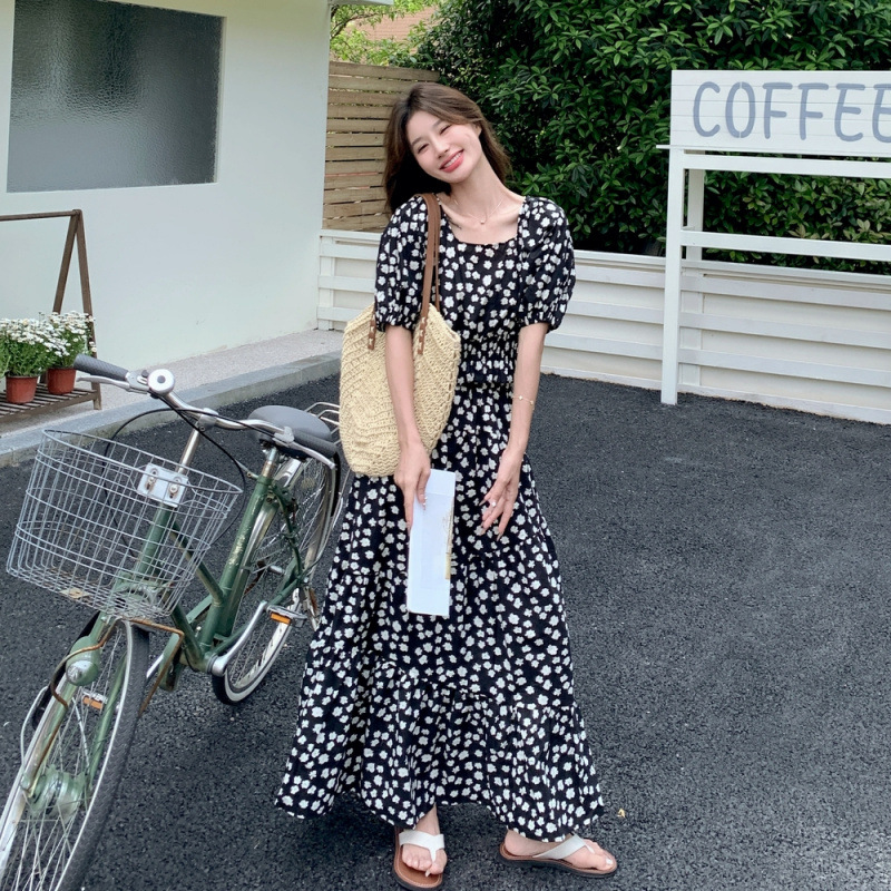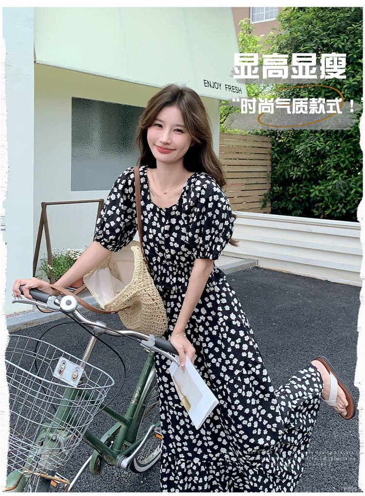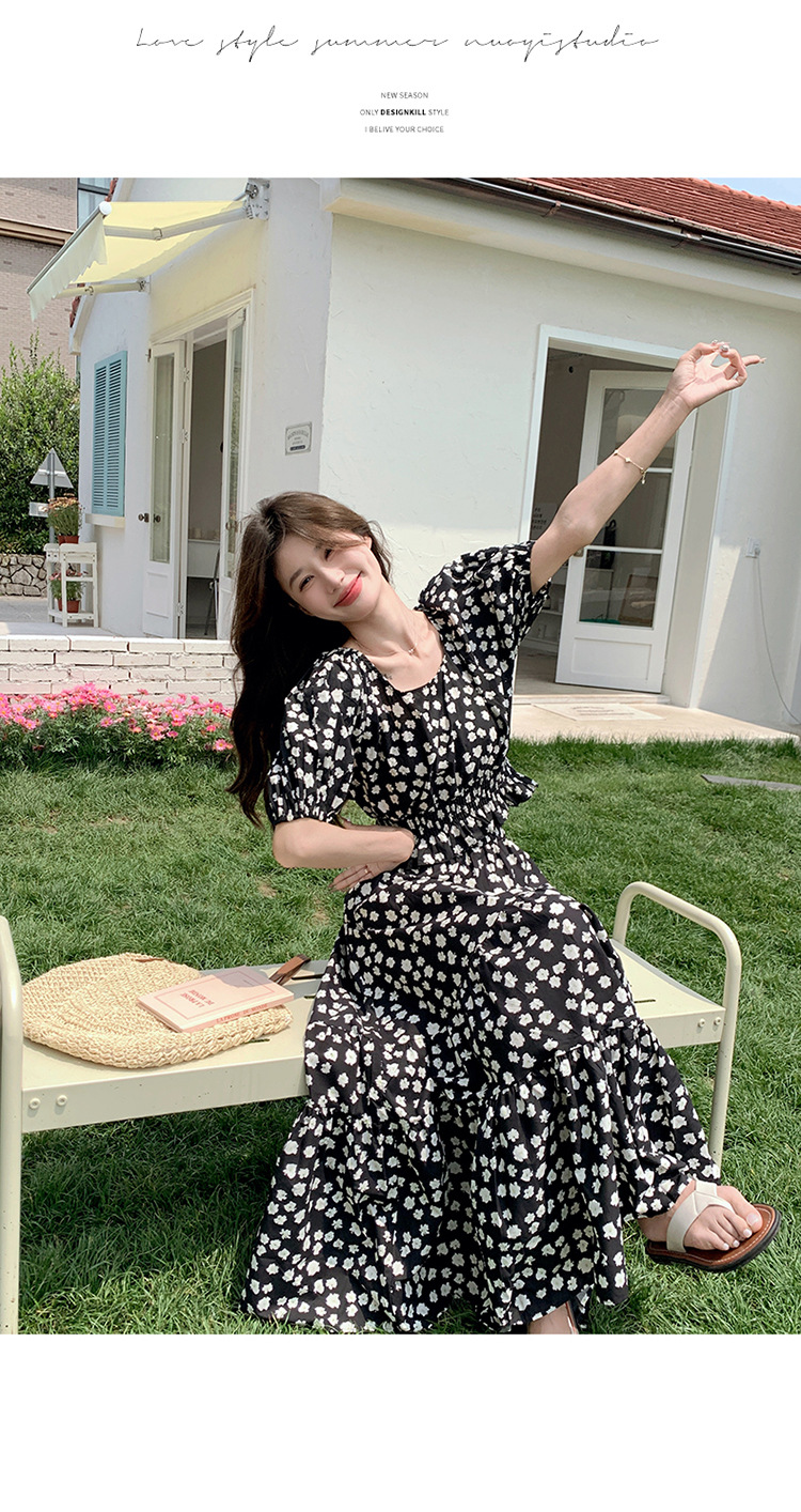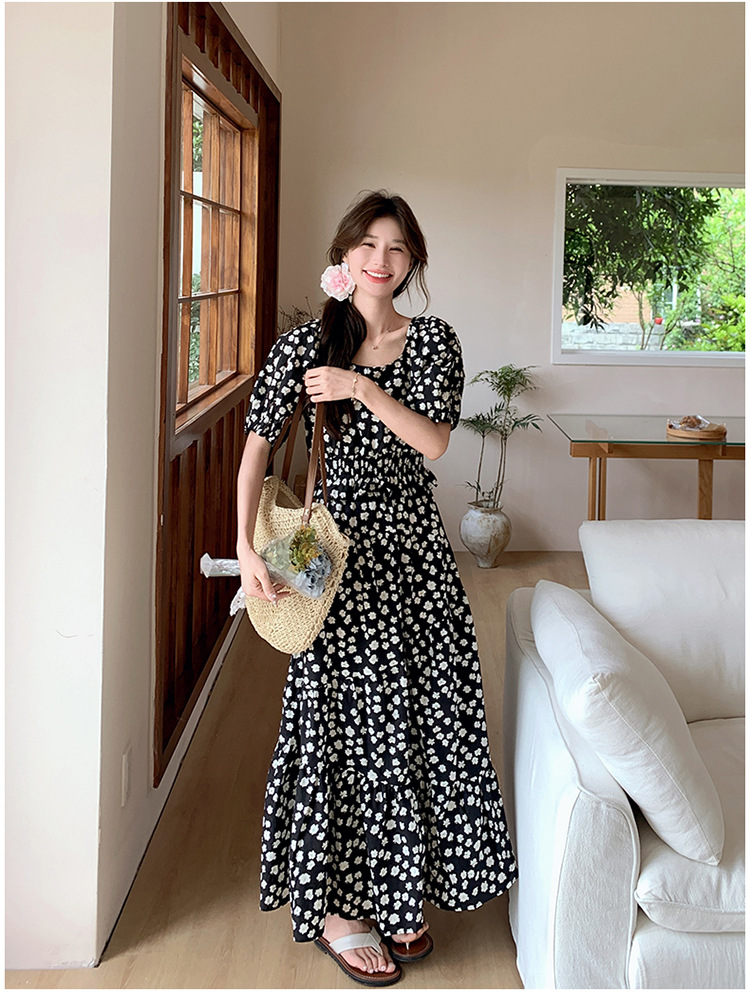 리얼 샷 한국 스타일 라이트 성숙한 프랑스 스타일 플로랄 롱 원피스 새로운 패션 타이트 허리 슬리밍 원피스 세트 여성 2025 여름스토어 가기