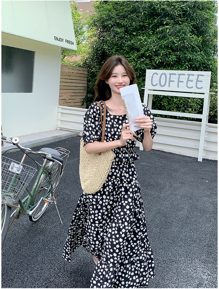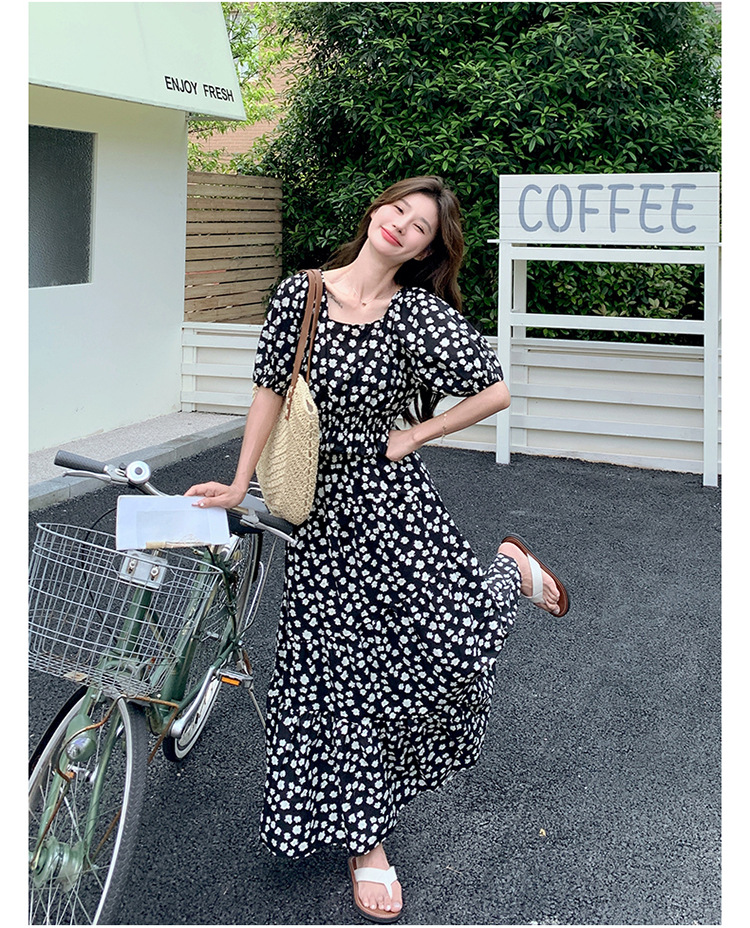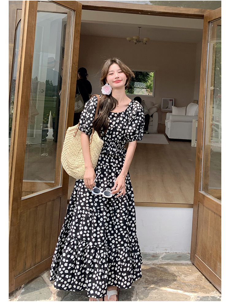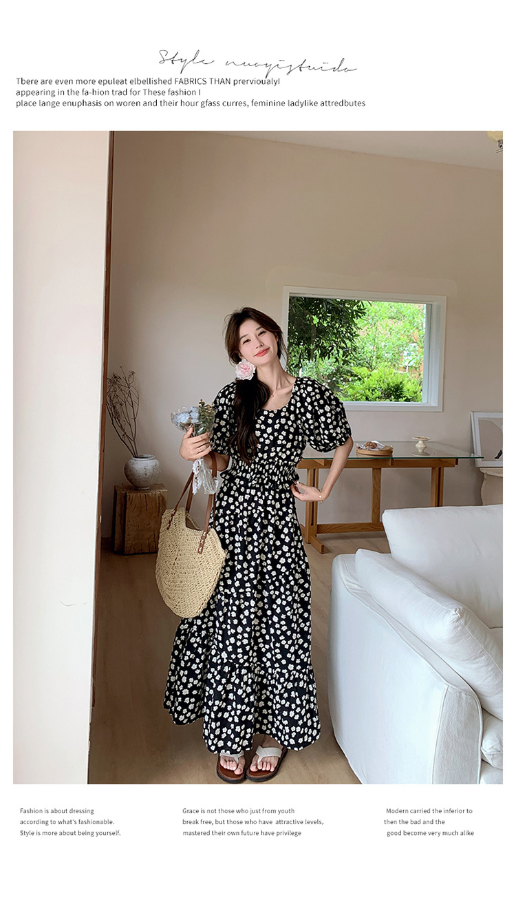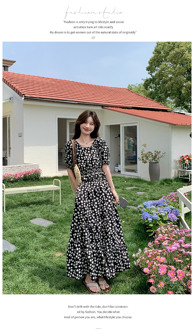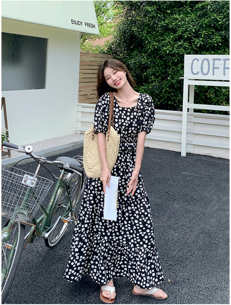리얼 샷 한국 스타일 라이트 성숙한 프랑스 스타일 플로랄 롱 원피스 새로운 패션 타이트 허리 슬리밍 원피스 세트 여성 2025 여름스토어 가기