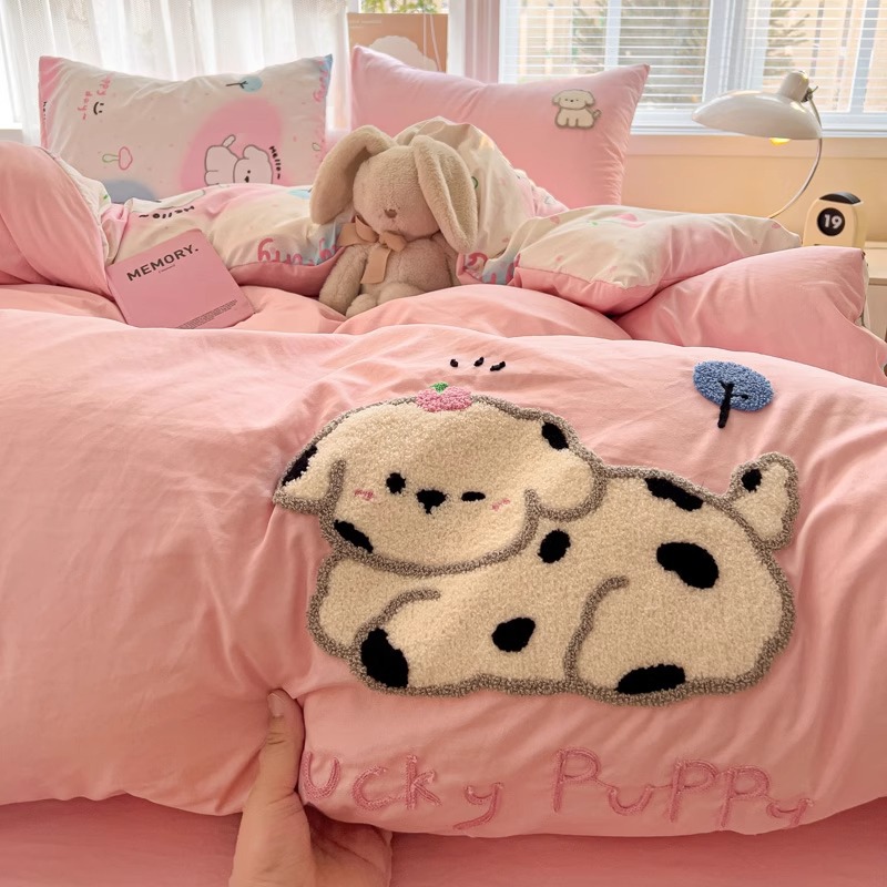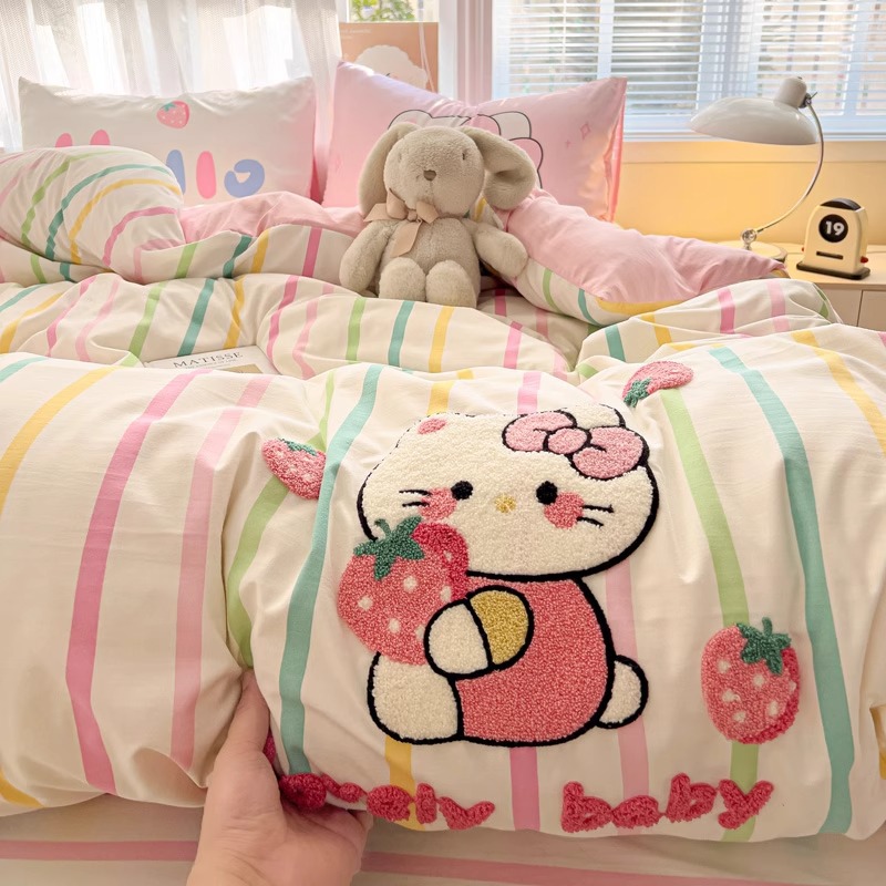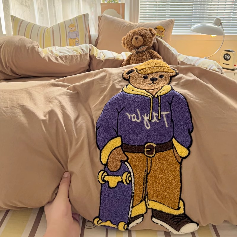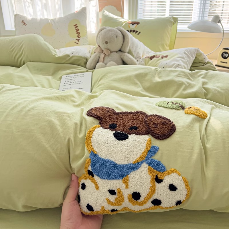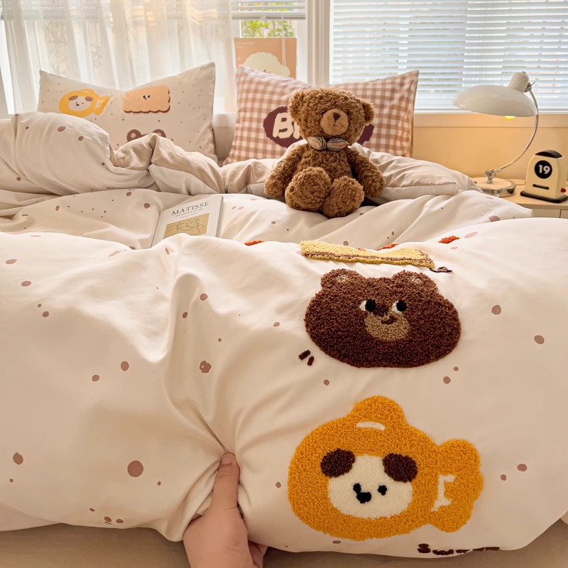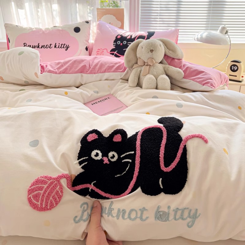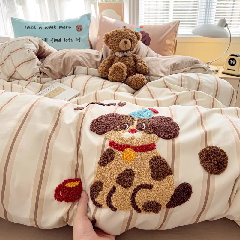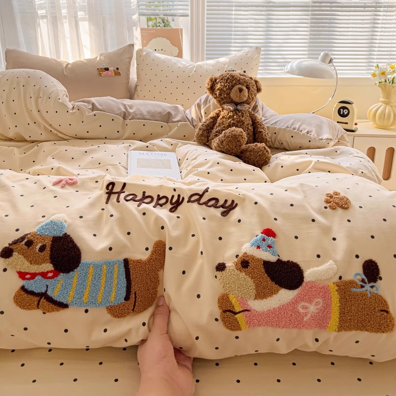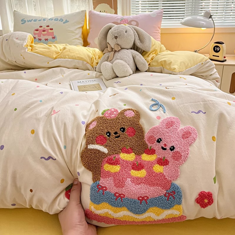 구름면 타월 자수 4 조각 세트 2025 새로운 만화 가정용 침대 시트 퀼트 세트 침실 싱글 학생 기숙사스토어 가기