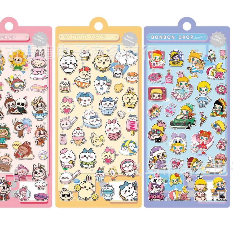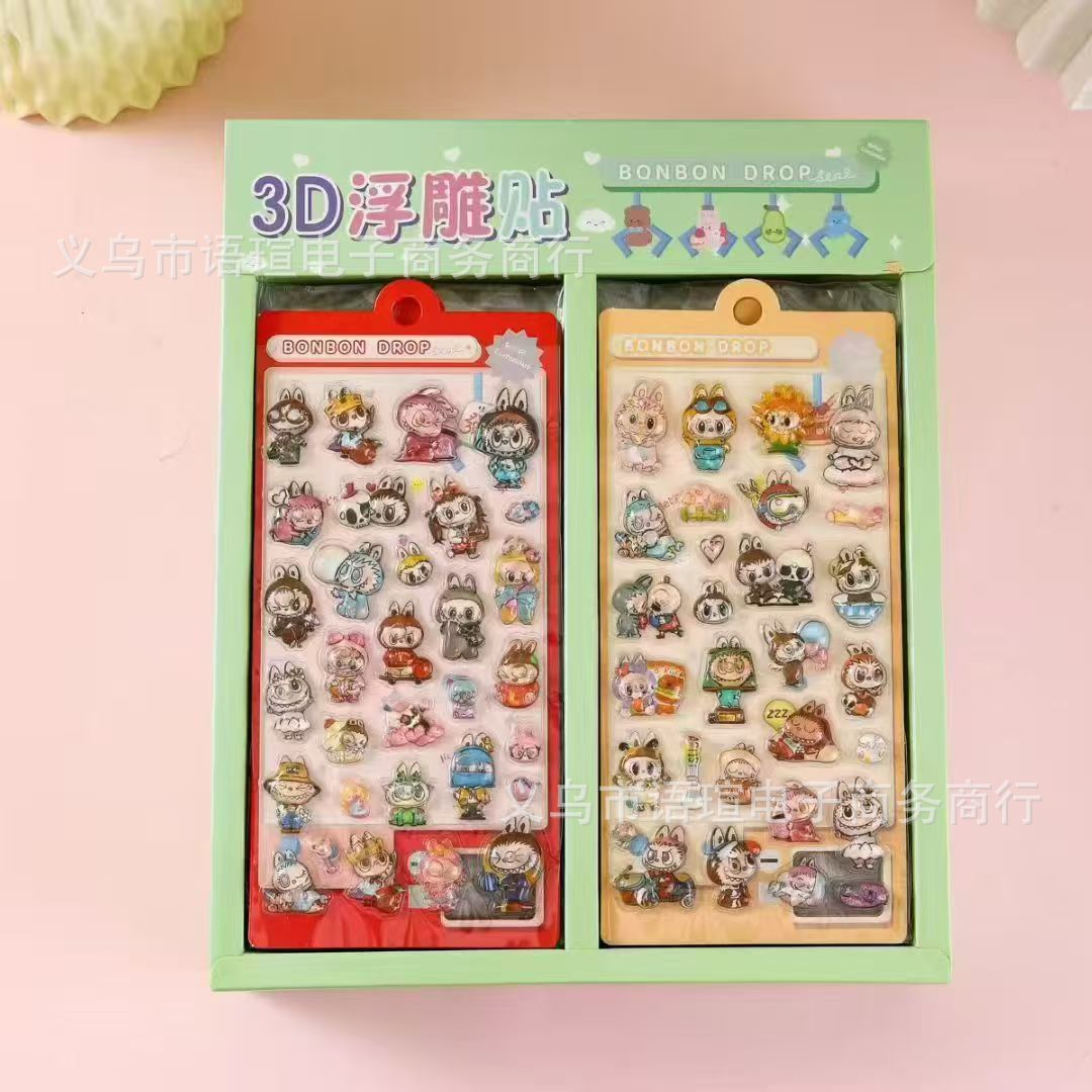 새로운 만화 3D 입체 구호 스티커 어린이 DIY 손 계정 장식 재료 스티커 문구 컵 장식 스티커