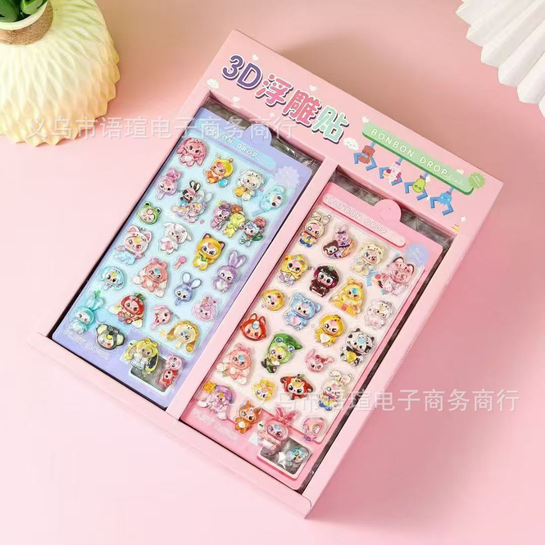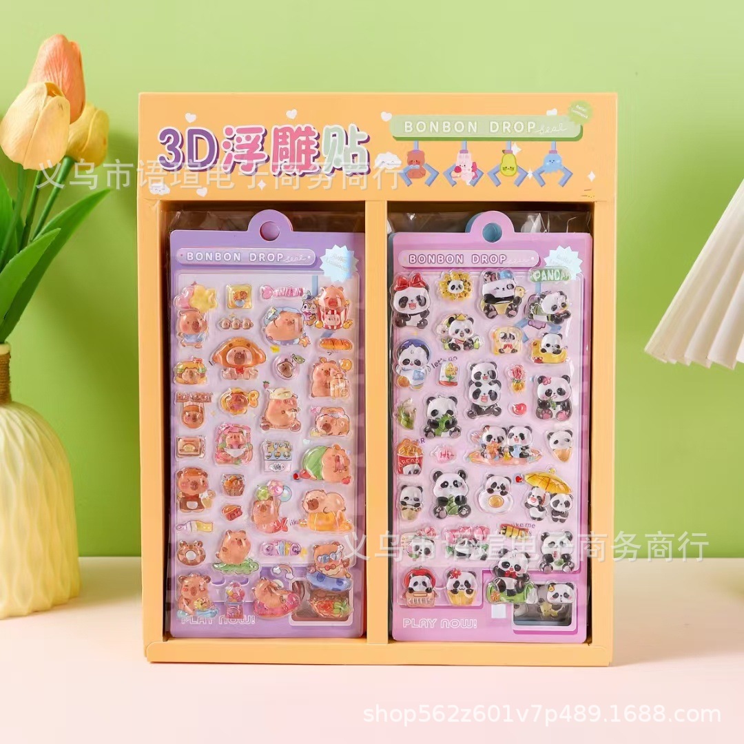 새로운 만화 3D 입체 구호 스티커 어린이 DIY 손 계정 장식 재료 스티커 문구 컵 장식 스티커스토어 가기