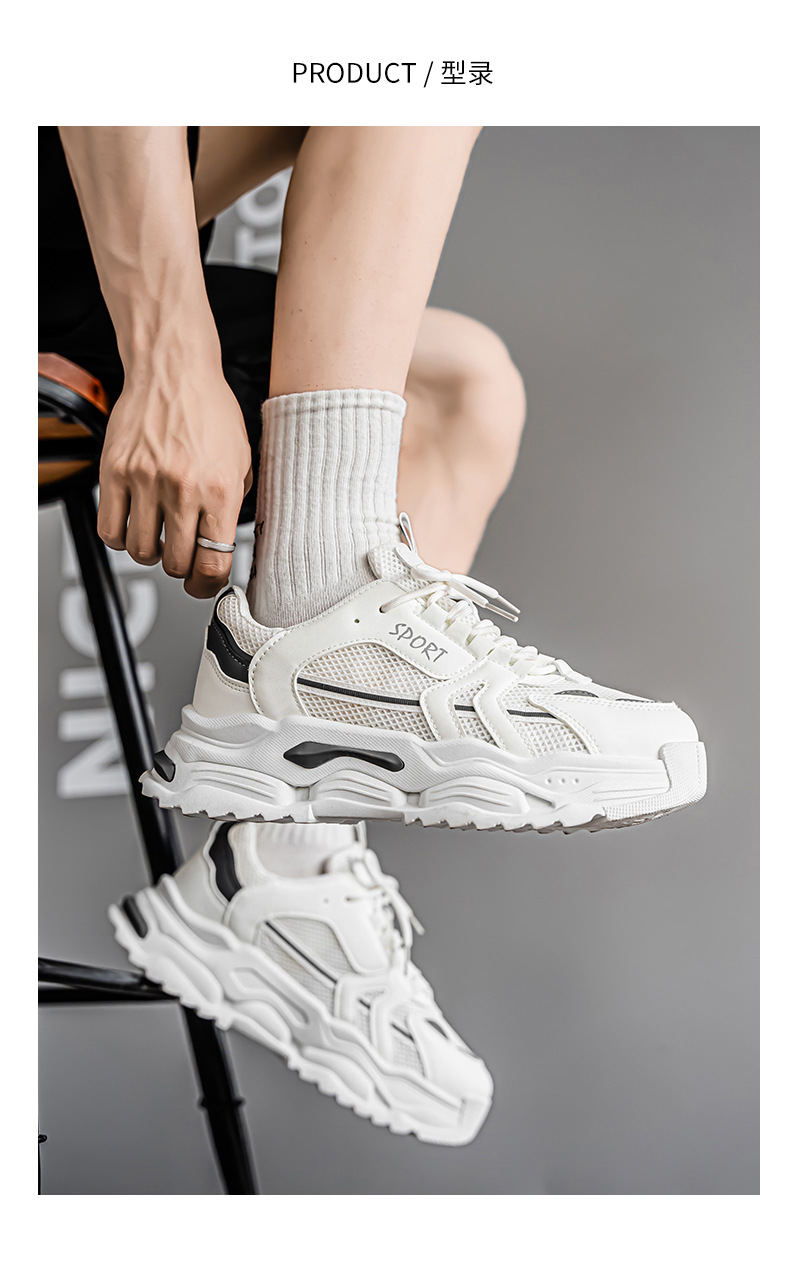 인기있는 남성 신발 봄과 여름 작은 흰색 신발 새로운 다목적 스포츠 레저 달리기 높이 청소년 그물 신발 아빠 신발스토어 가기