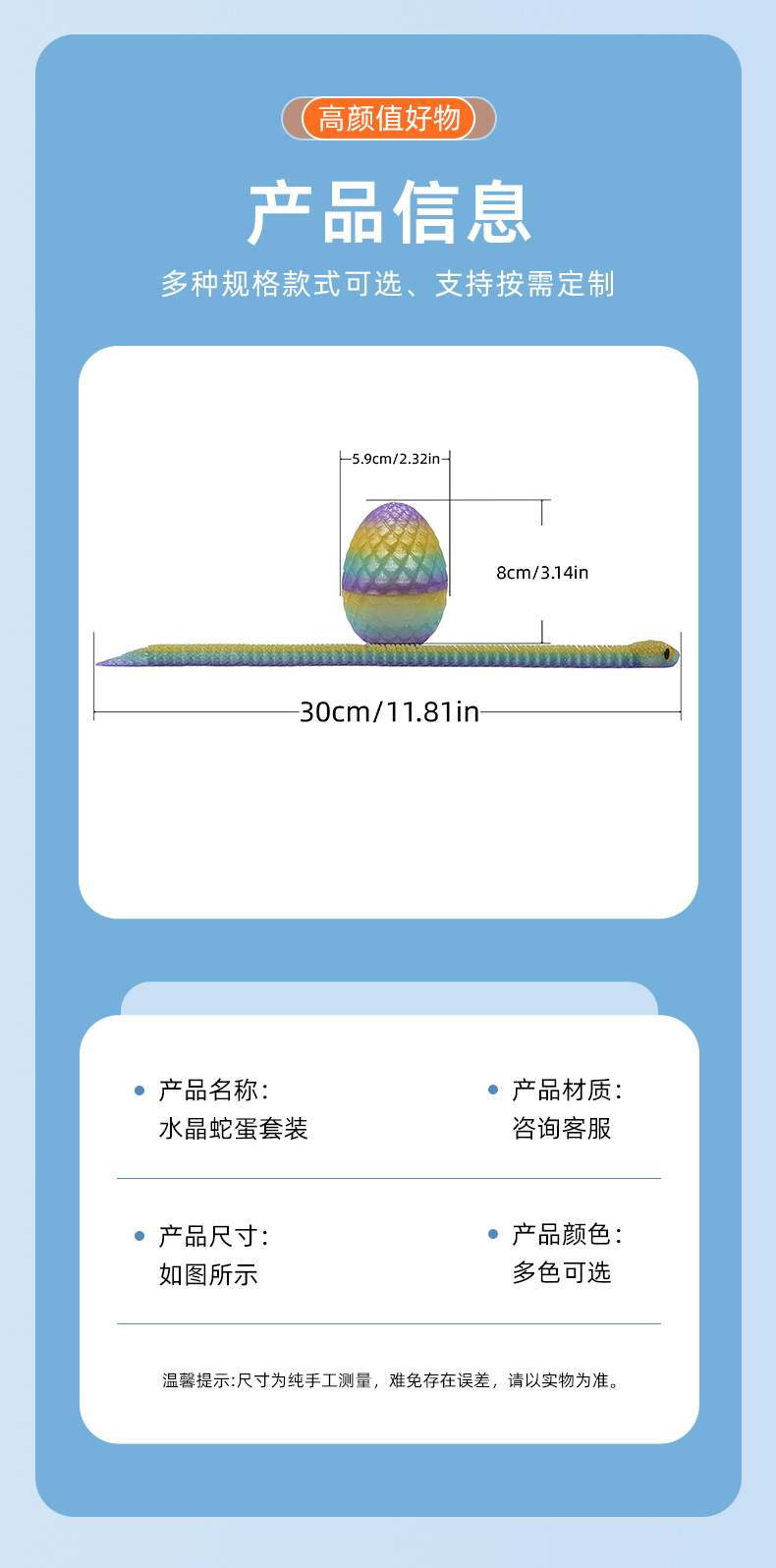크리스탈 뱀 계란 세트 3D 인쇄 장식 장식품 인터넷 연예인 장난감 공예 크리 에이 티브 손으로 만든 선물 제조 업체 도매