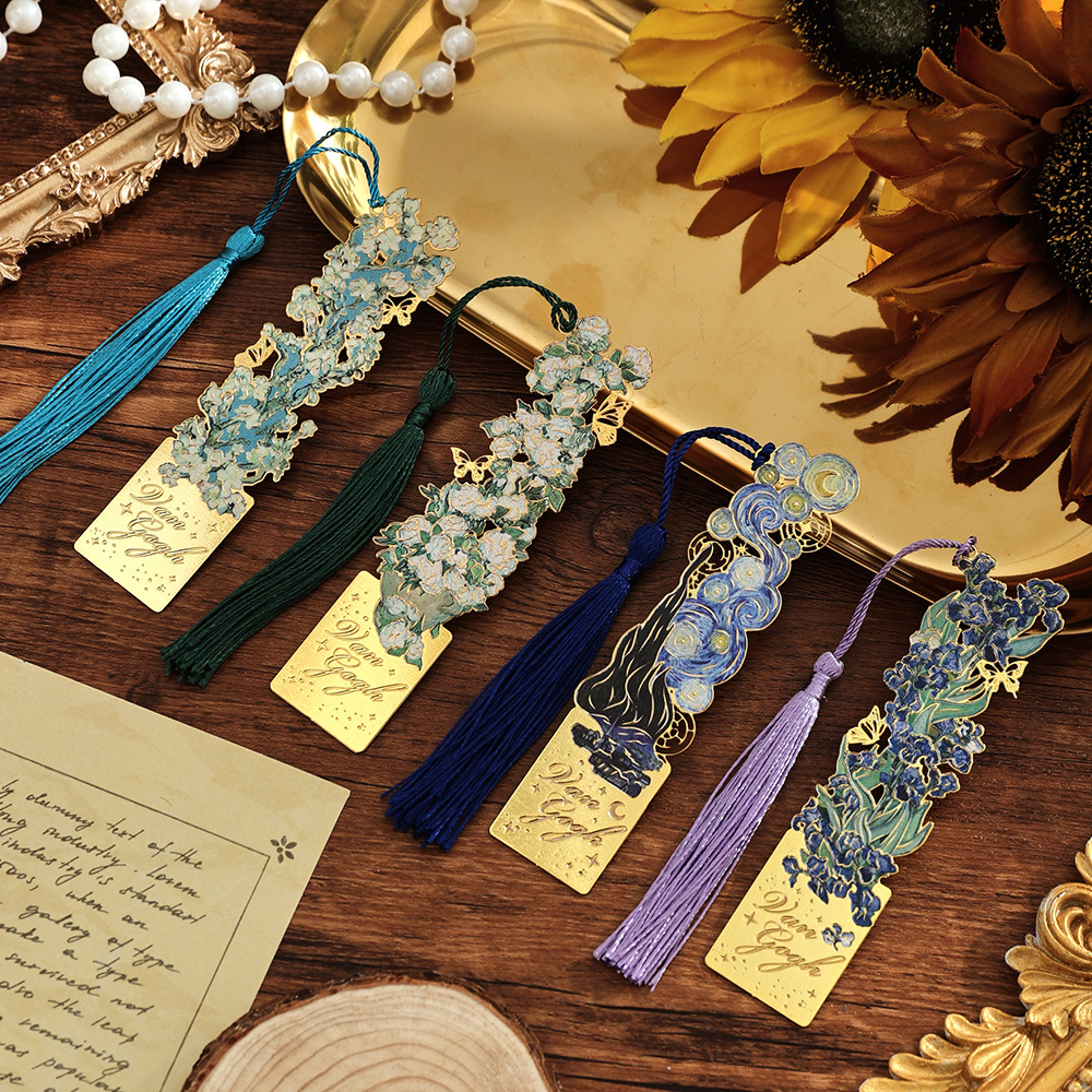 국경 간 골동품 유화 금속 책갈피 반 고흐 유명한 그림 속이 빈 북마크 술집 창조적 인 손 계정 장식 책장스토어 가기