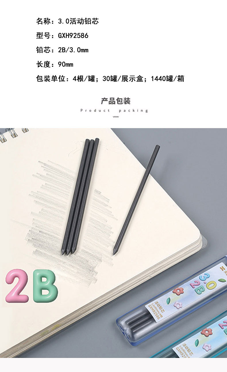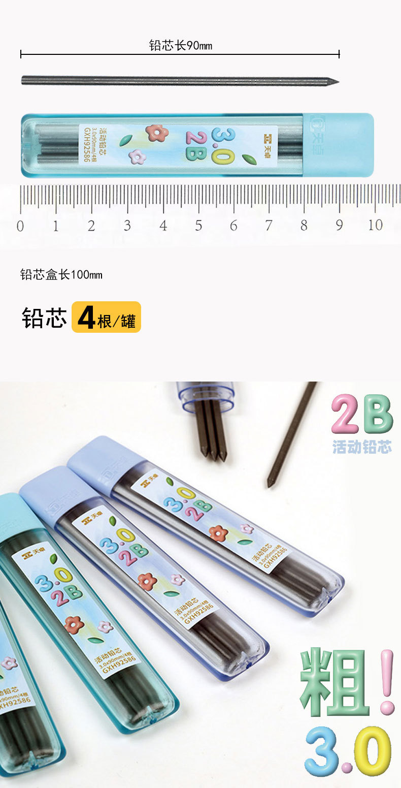 Tianzhuo 92586 자동 연필 교체 코어 3.0mm 학생 대담한 드로잉 스케치 리드 코어는 연필 코어를 깨기 쉽지 않습니다.스토어 가기