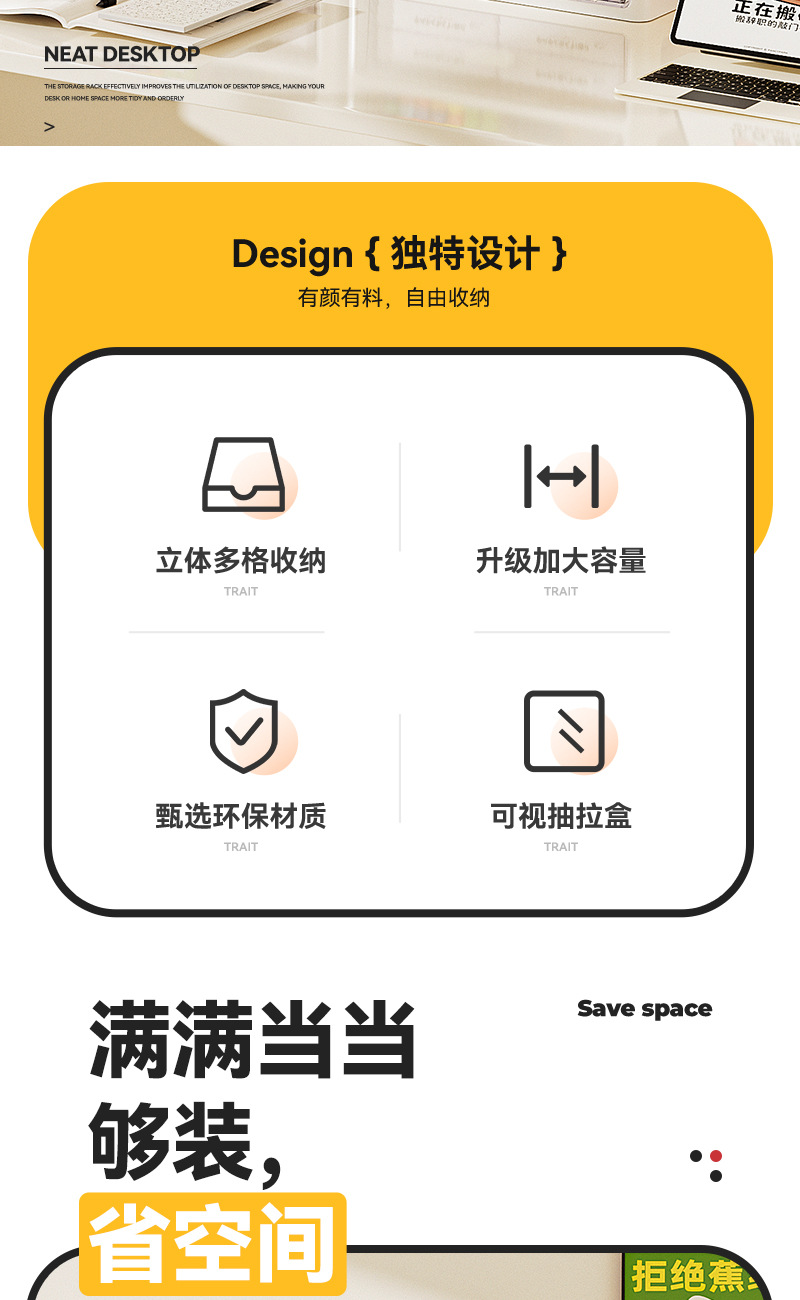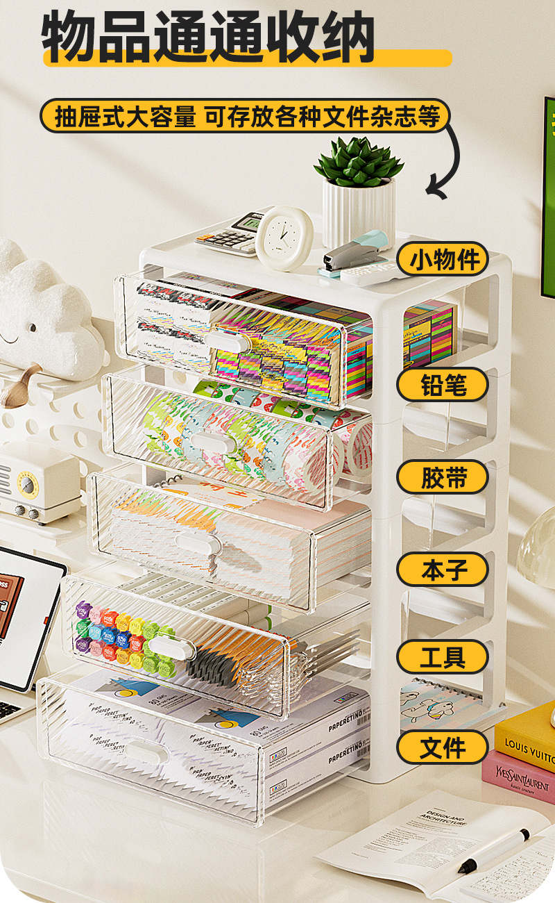 투명 데스크탑 수납함 서랍형 책상 수납장 문구 잡화 다층 수납장 화장품 정리함