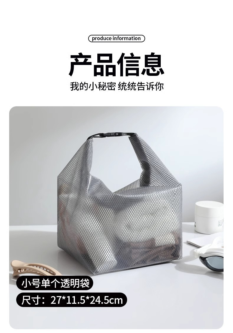 透明防水袋衣物收纳整理袋健身整理收纳袋分装衣服游泳专用手提包防水收纳袋健身衣物游泳浴室大容量束口男女户外旅行洗漱收纳小包