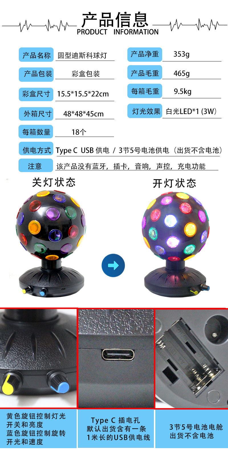 360도 회전 디스코 라이트 볼 디스코 라이트 조절 가능한 속도 조절 가능한 밝기 KTV 파티 분위기 매직 볼스토어 가기