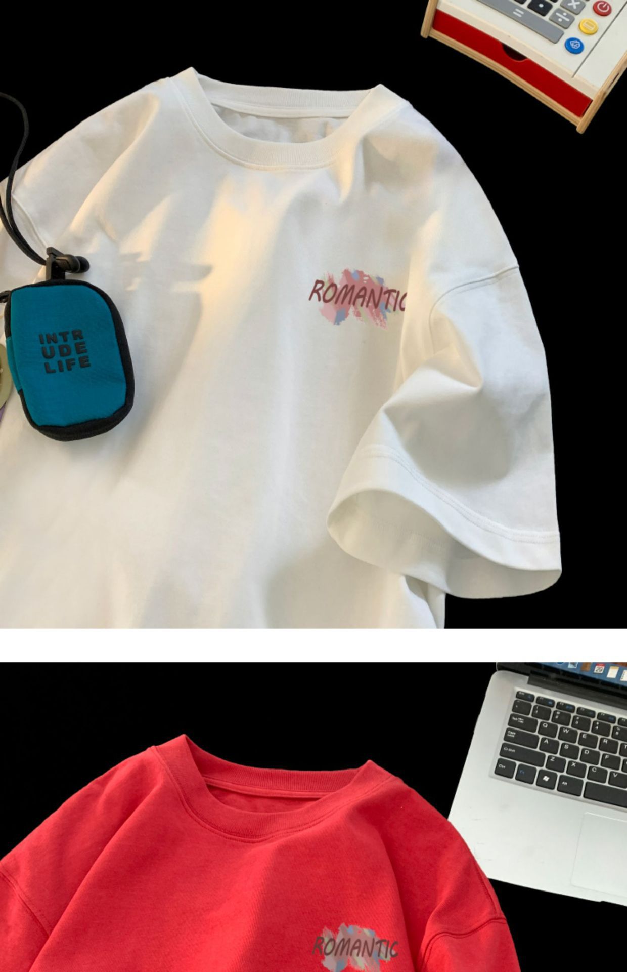 여름 남성용 레터 프린트 반팔 티셔츠, 루즈하고 통기성이 좋은 반팔 미국 트렌디 브랜드 주름 방지 및 보존 티셔츠 탑스토어 가기