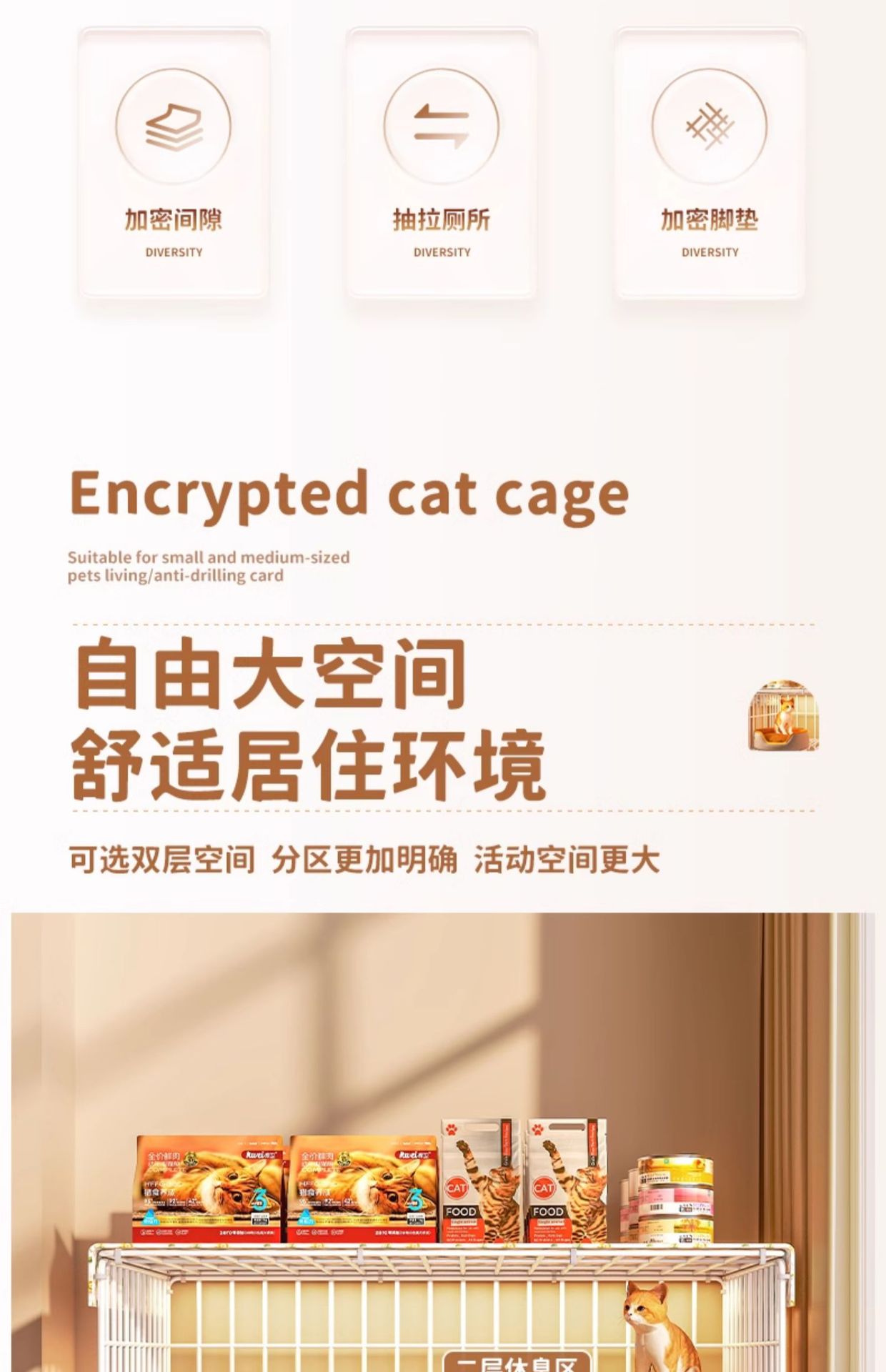 더블 레이어 고양이 케이지, 매우 넓은 자유 공간, 가정용 실내 고양이 둥지, 고양이 화장실, 고양이 접이식 새끼 고양이를 위한 통합 제품스토어 가기