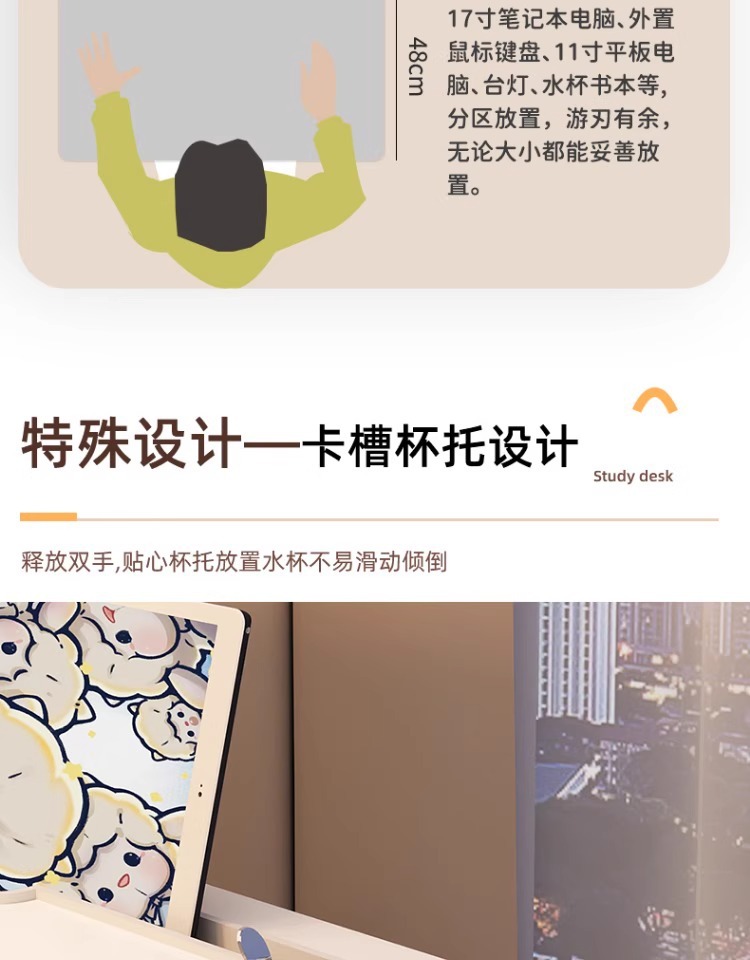 • 60*40*28cm 따뜻한 흰색|카드 슬롯이 있는 컵 홀더 + 강화된 테이블 다리 + 초승달 모양의 데스크탑