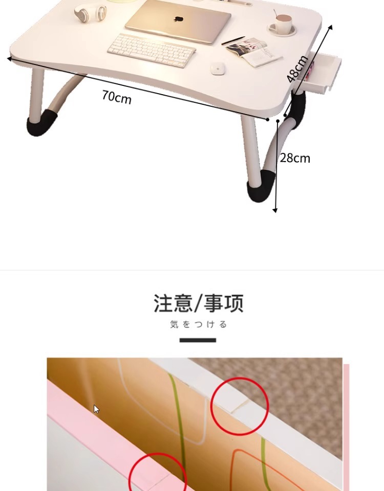 • 70*48*28cm 벚꽃 파우더|카드 슬롯 + 컵 홀더 + 강화 테이블 다리 + 초승달 모양의 데스크탑 포함