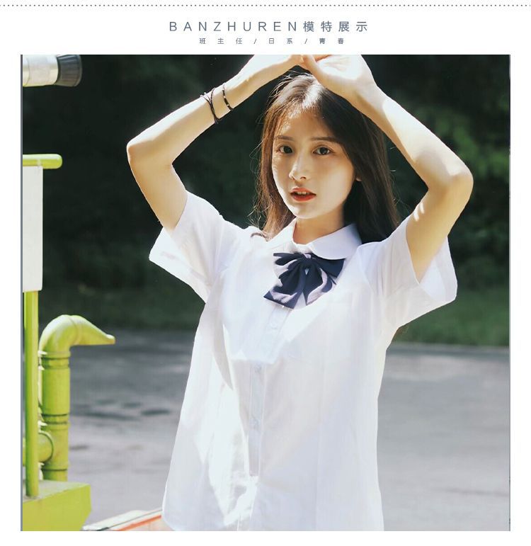 여름 대학 스타일 수직 칼라 화이트 셔츠 짧은 소매 내복 여성 수업 졸업 고등학교 학생 JK 유니폼 탑 셔츠