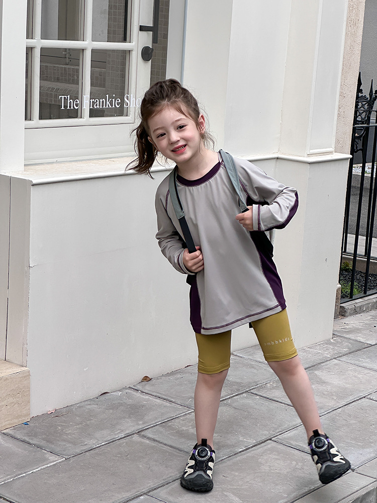 이모 베이베이 어린이 산 야외 선 스크린 탑 소녀 한국식 경량 서양식 컬러 매칭 긴팔 티셔츠스토어 가기