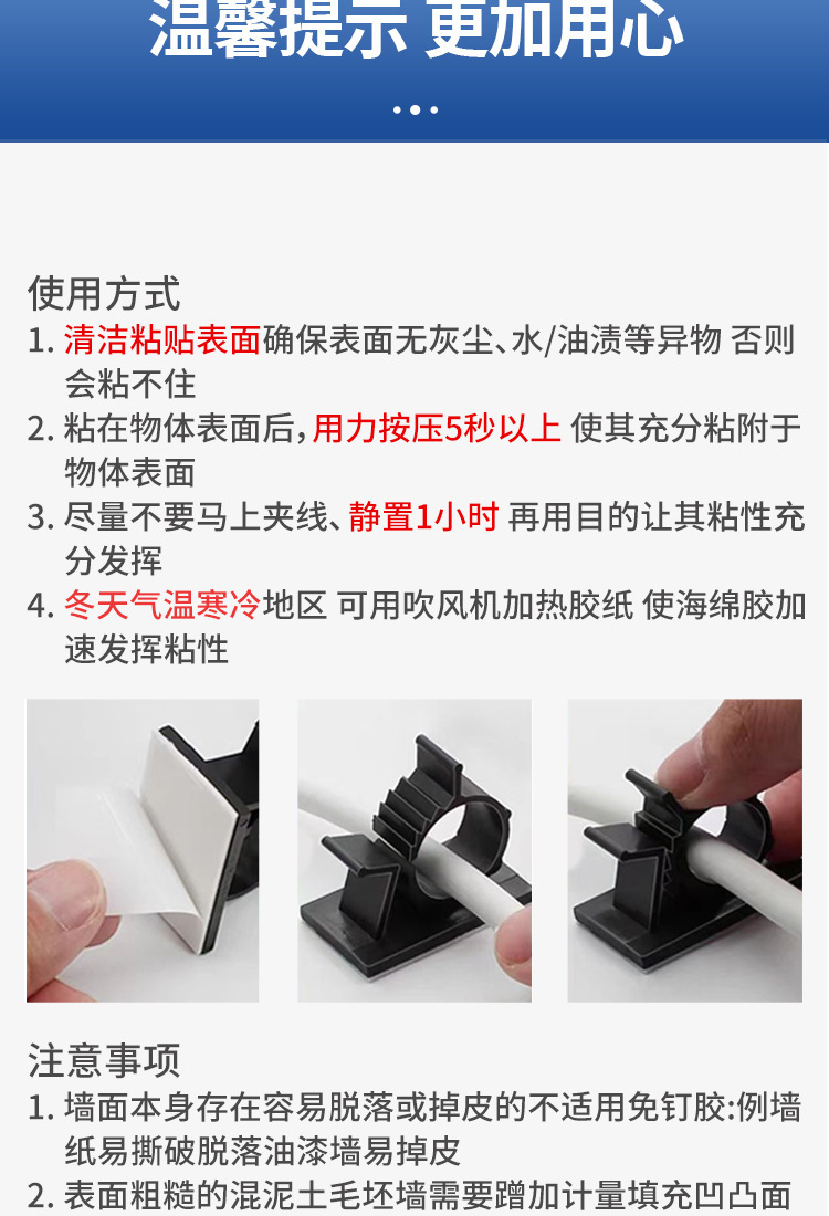 와이어 홀더, 자체 접착식 버클 디자인, 펀치 없는 가스 파이프 및 수도관 고정 클립, 편리한 와이어 정리기