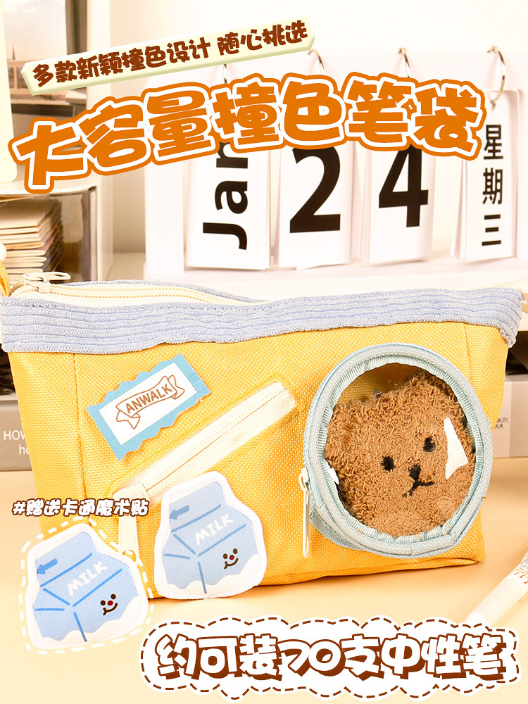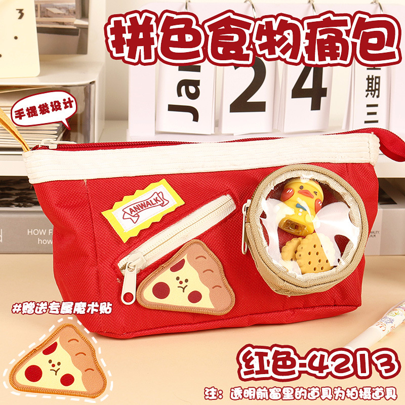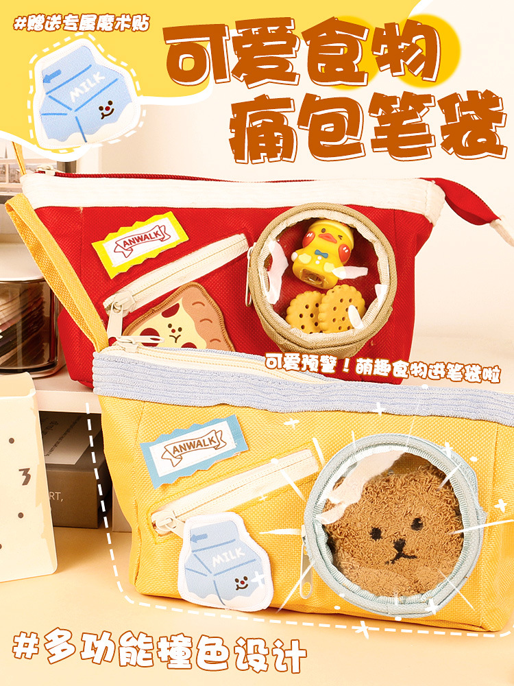 귀여운 음식 통증 팩 연필 가방 만화 간식 연필 가방 학생 6 층 파티션 보관 문구 가방 연필 상자