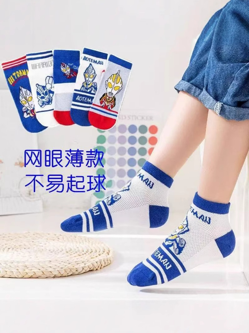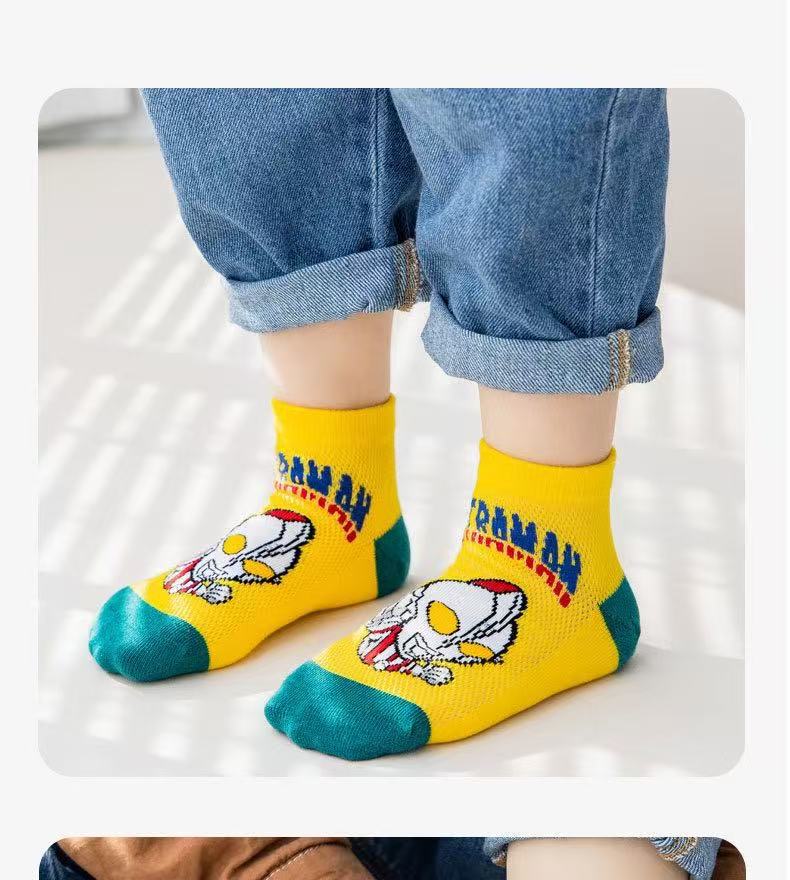 여름 어린이 양말 만화 유행 통기성 메쉬 소년 짧은 튜브 세련되고 편안한 면화 뼈없는 소년 보트 양말