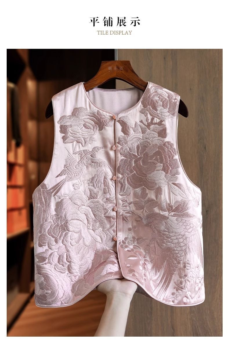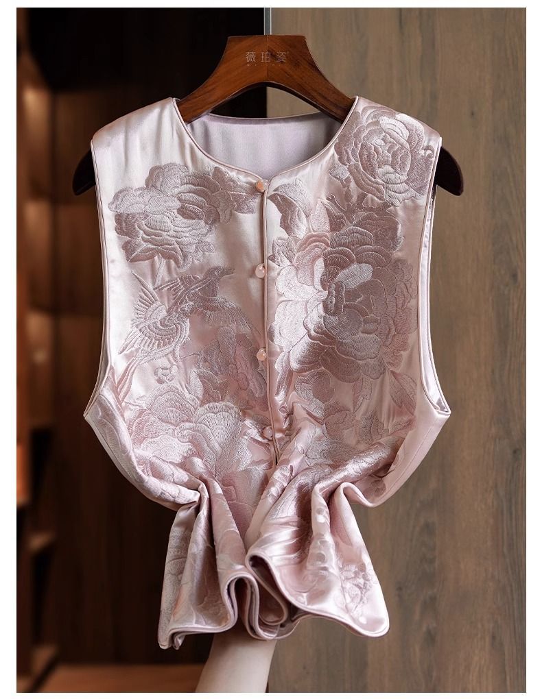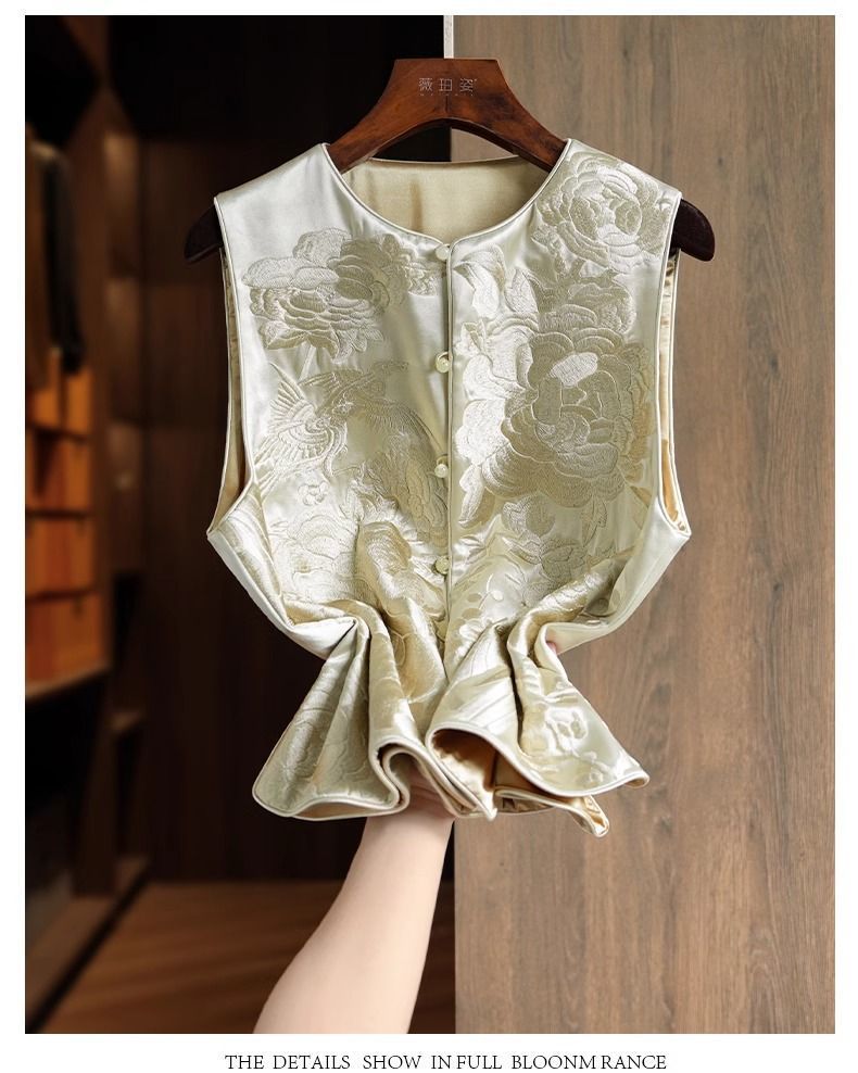 우아한 고급 아세트산 새로운 중국 조끼 여성 승무원 독특하고 세련된 무거운 자수 라이트 Guofeng 탑