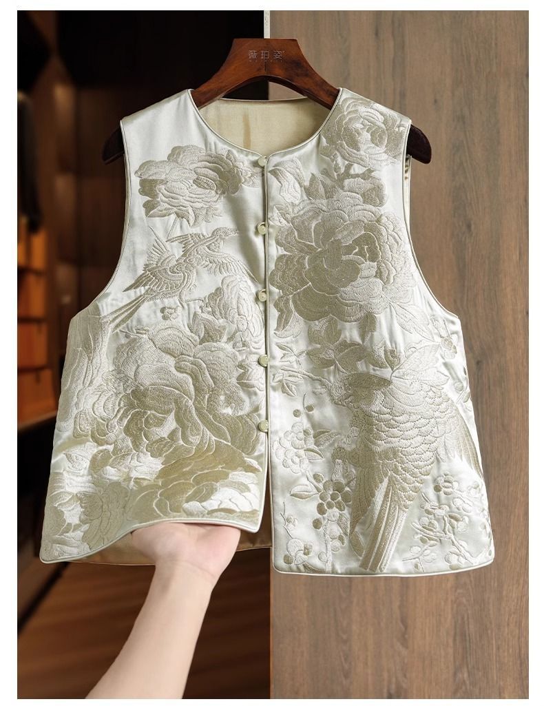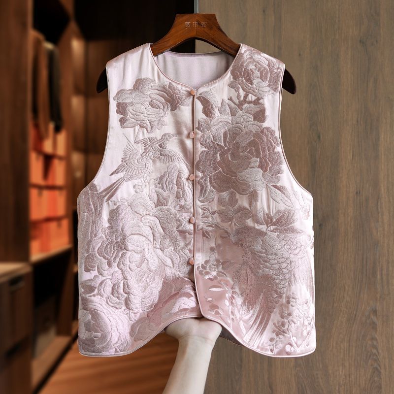 우아한 고급 아세트산 새로운 중국 조끼 여성 승무원 독특하고 세련된 무거운 자수 라이트 Guofeng 탑스토어 가기
