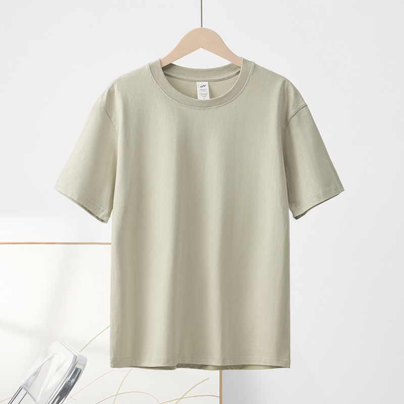 여름 반팔 230g 면 티셔츠 여성용 단색 둥근 목 기본 반소매 느슨한 옷 최고 여성 2025