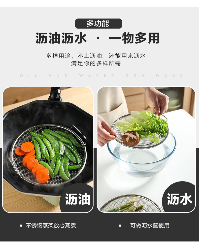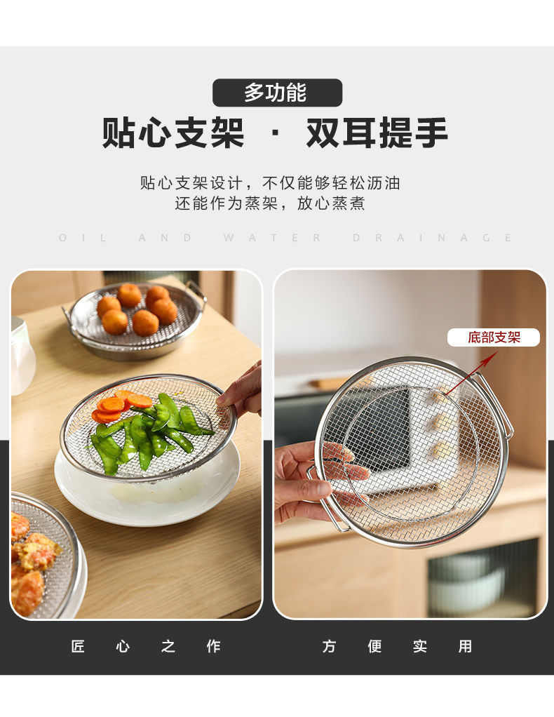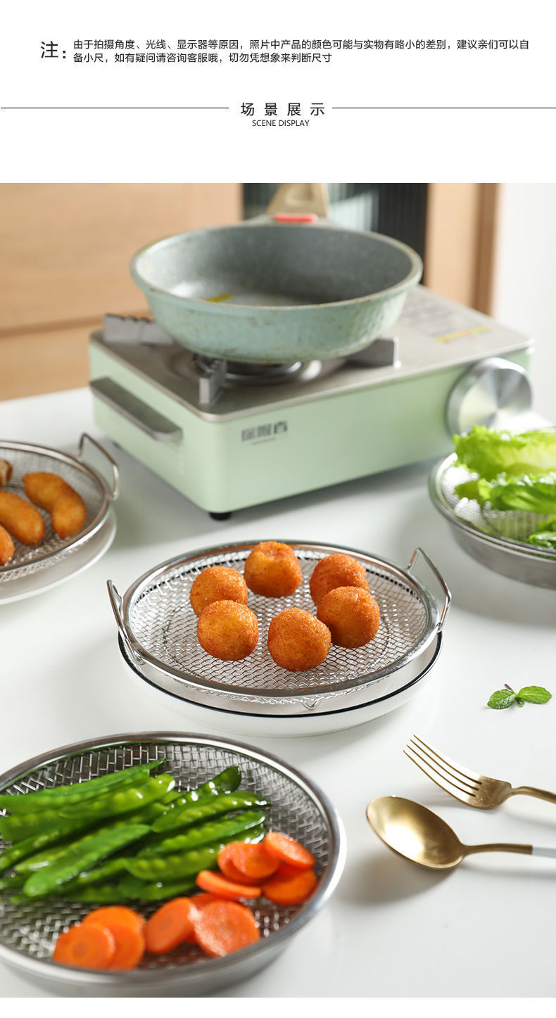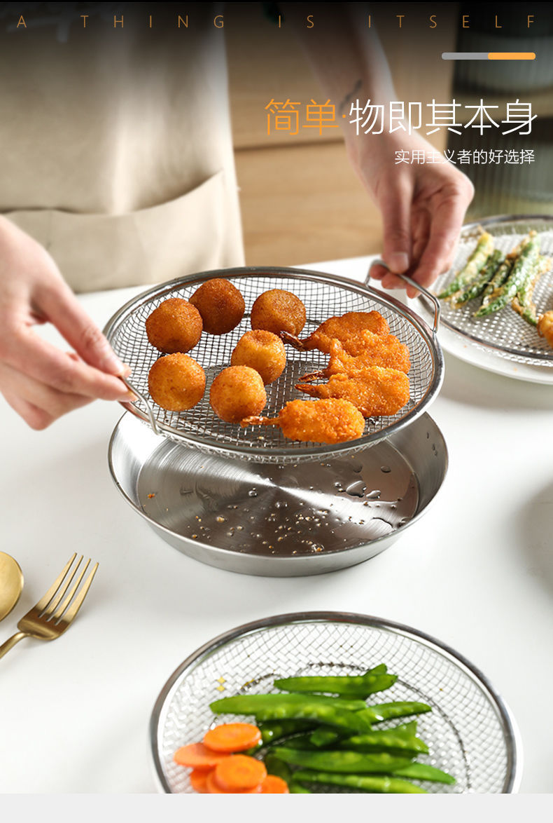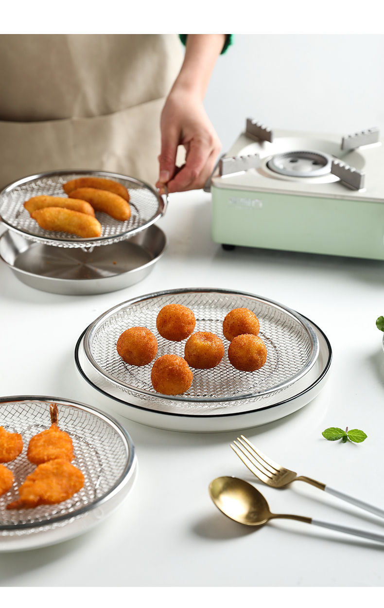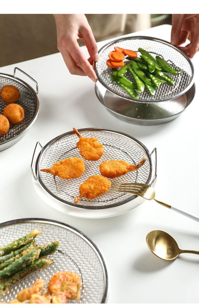 필터가있는 스테인레스 스틸 디스크 가정용 주방 바베큐 튀김 스낵 오일 필터 플레이트 냉각 배수 트레이스토어 가기