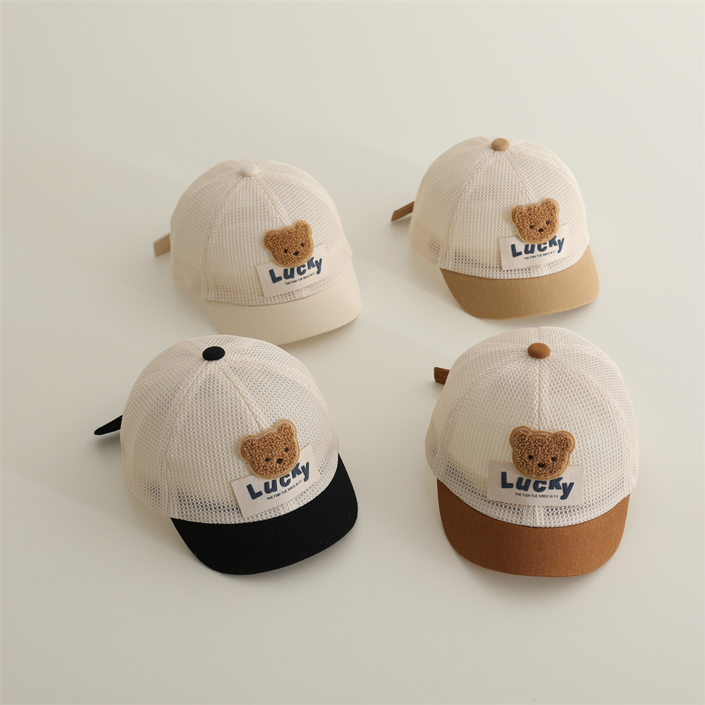 아기 여름 얇은 어린이 모자 풀 네트 베어 라벨 캡 아기 남성 햇빛 스크린 아기 야구 모자스토어 가기