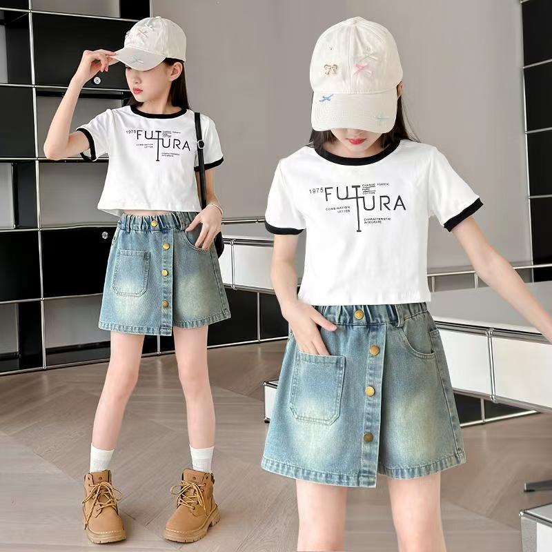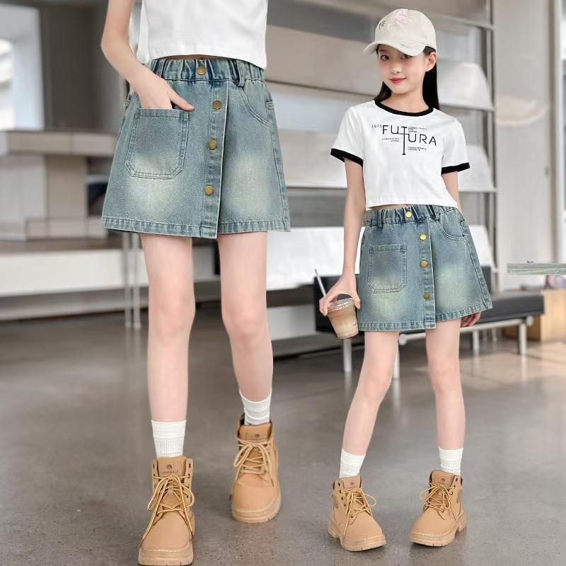 소녀 데님 Culottes 2025 새로운 여름 바지 유행 올매치 어린이 대형 어린이 여름 얇은 반바지스토어 가기