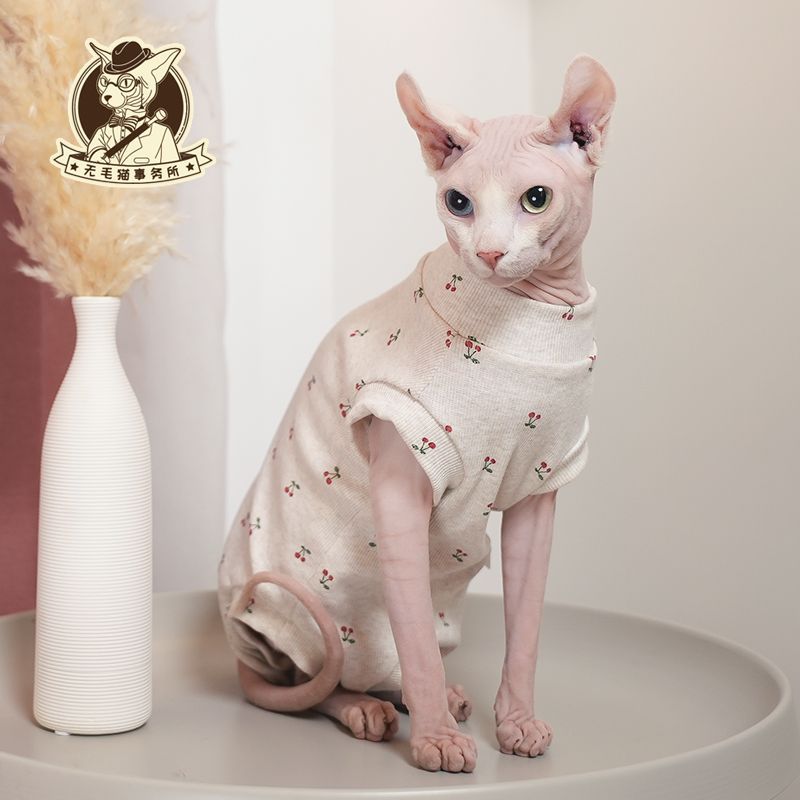 2023 봄과 여름 털이없는 고양이 옷 데본 애완 동물 고양이 새끼 고양이 순수 코튼 고탄성 통기성 배꼽 커버 네 발 옷스토어 가기