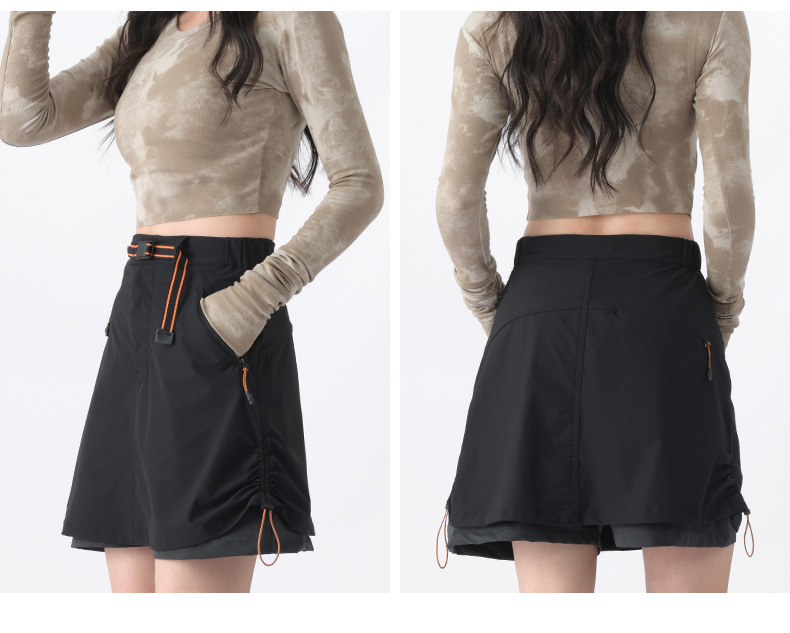 여성용 야외 작업복 드로스트링 짧은 치마바지, 통기성 신축성 스커트, 노출 방지 러닝 및 하이킹 바지, 여성용 도매 및 맞춤 제작스토어 가기