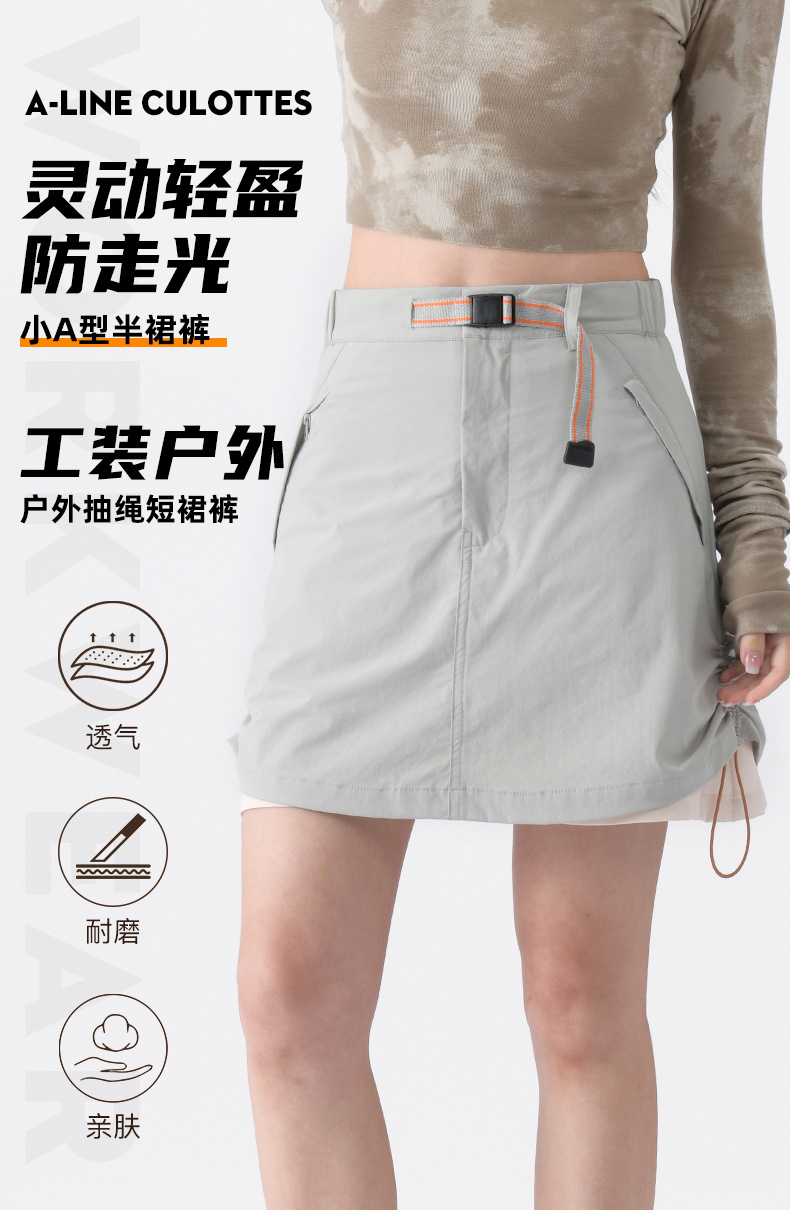 여성용 야외 작업복 드로스트링 짧은 치마바지, 통기성 신축성 스커트, 노출 방지 러닝 및 하이킹 바지, 여성용 도매 및 맞춤 제작