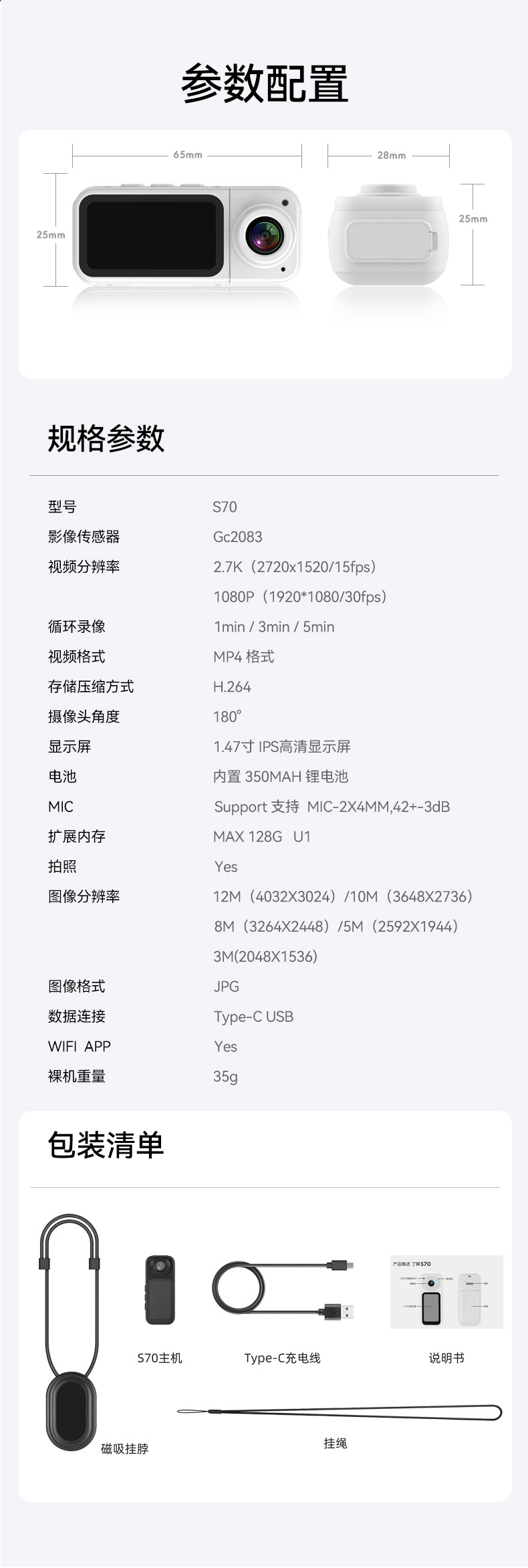 S70 엄지 카메라 슈퍼 긴 배터리 수명 자기 엄지 스포츠 카메라 HD 야외 휴대용 사이클링 카메라 크로스보더스토어 가기