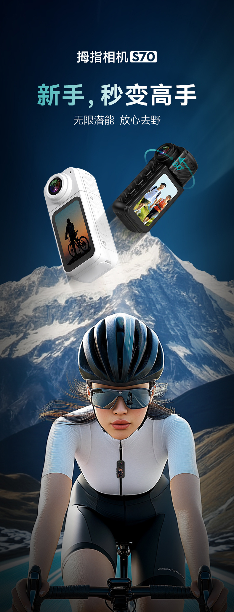 S70 엄지 카메라 슈퍼 긴 배터리 수명 자기 엄지 스포츠 카메라 HD 야외 휴대용 사이클링 카메라 크로스보더