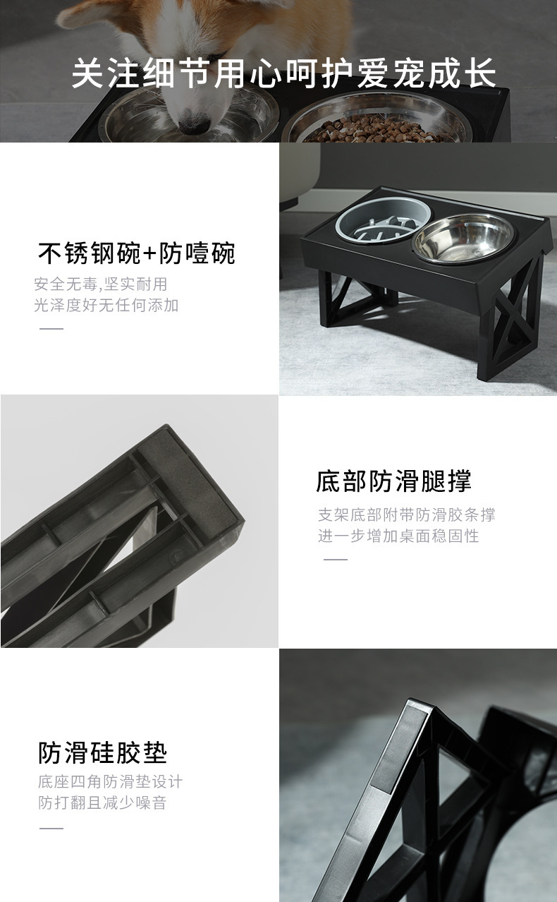 ✅ 애완 동물 개 그릇 고양이 그릇 스테인레스 스틸 개 고양이 먹이 그릇 스탠딩 피더 애완 동물을위한 높은 이중 애완 동물 먹이 그릇
