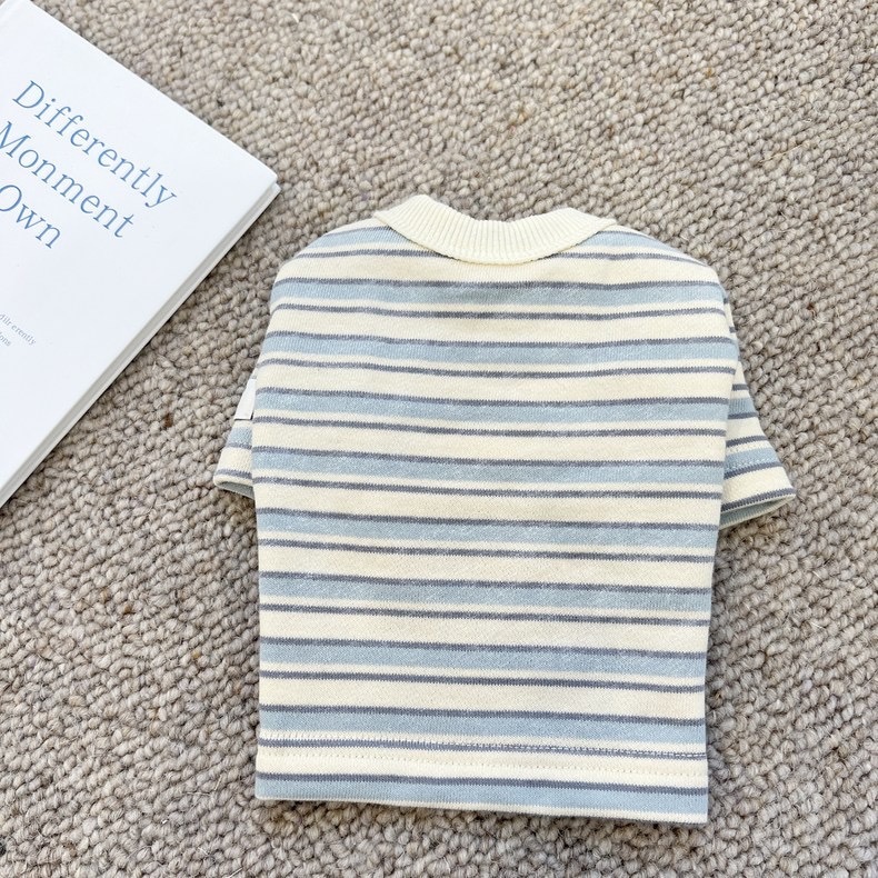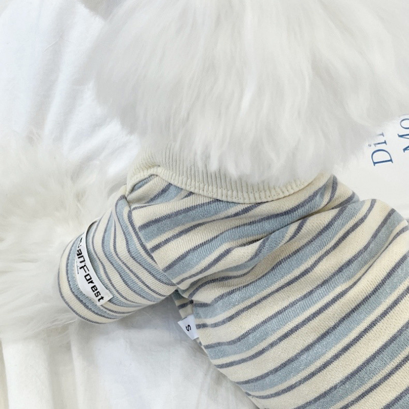 애완 동물 줄무늬 바닥 셔츠 봄과 가을 얇은 몰타 비숑 포메라니안 바다 소금 블루 한국 스타일 고양이와 개 옷
