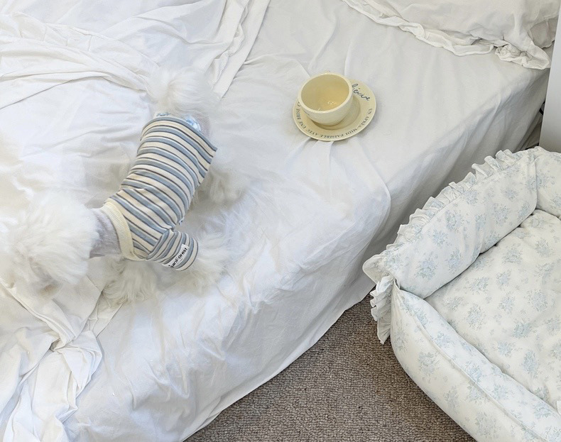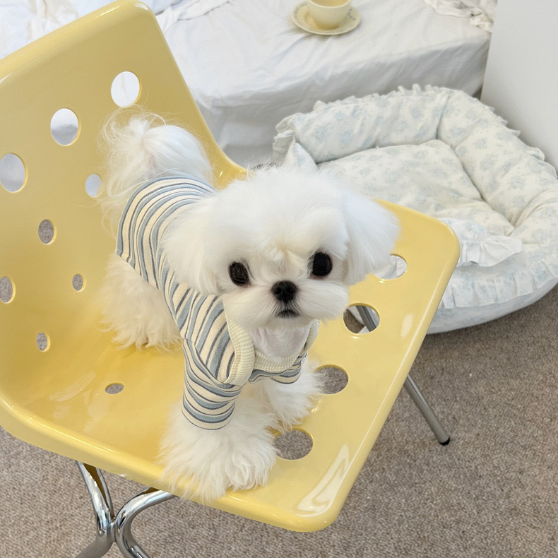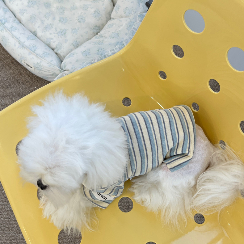 애완 동물 줄무늬 바닥 셔츠 봄과 가을 얇은 몰타 비숑 포메라니안 바다 소금 블루 한국 스타일 고양이와 개 옷스토어 가기