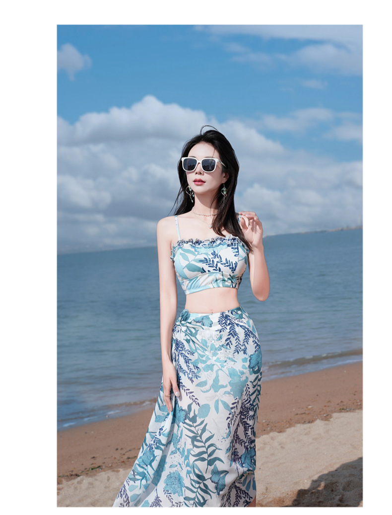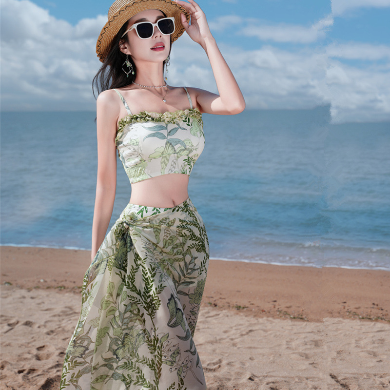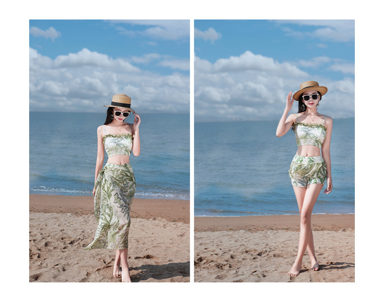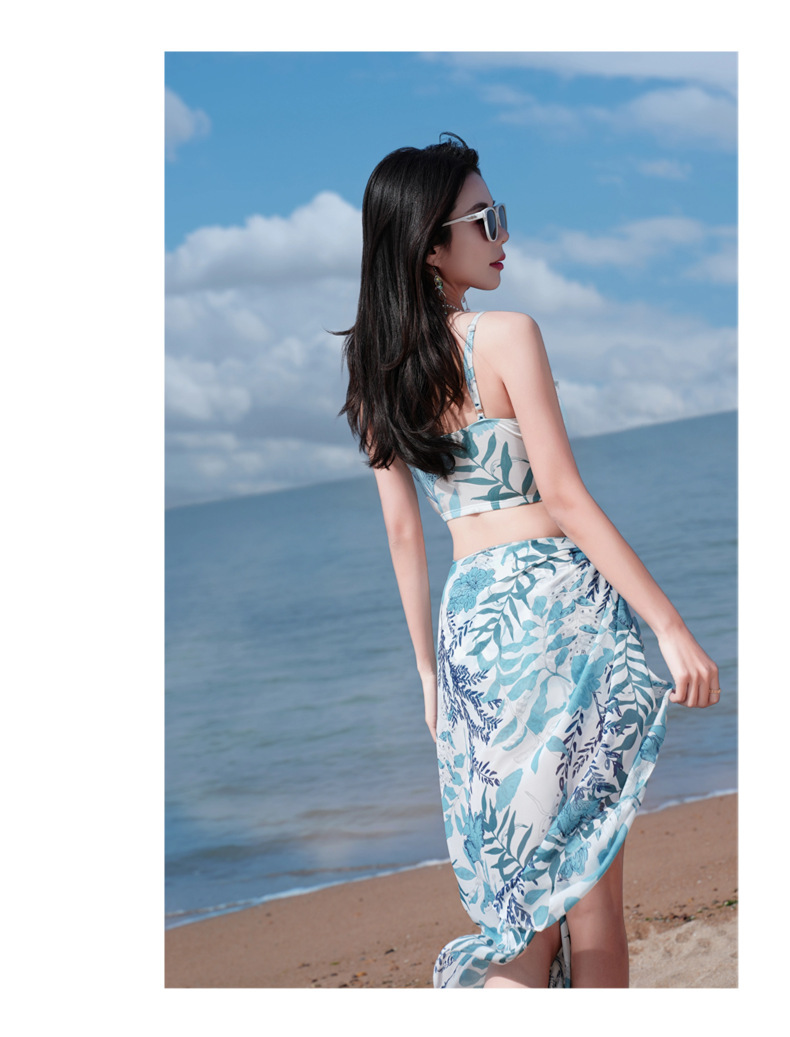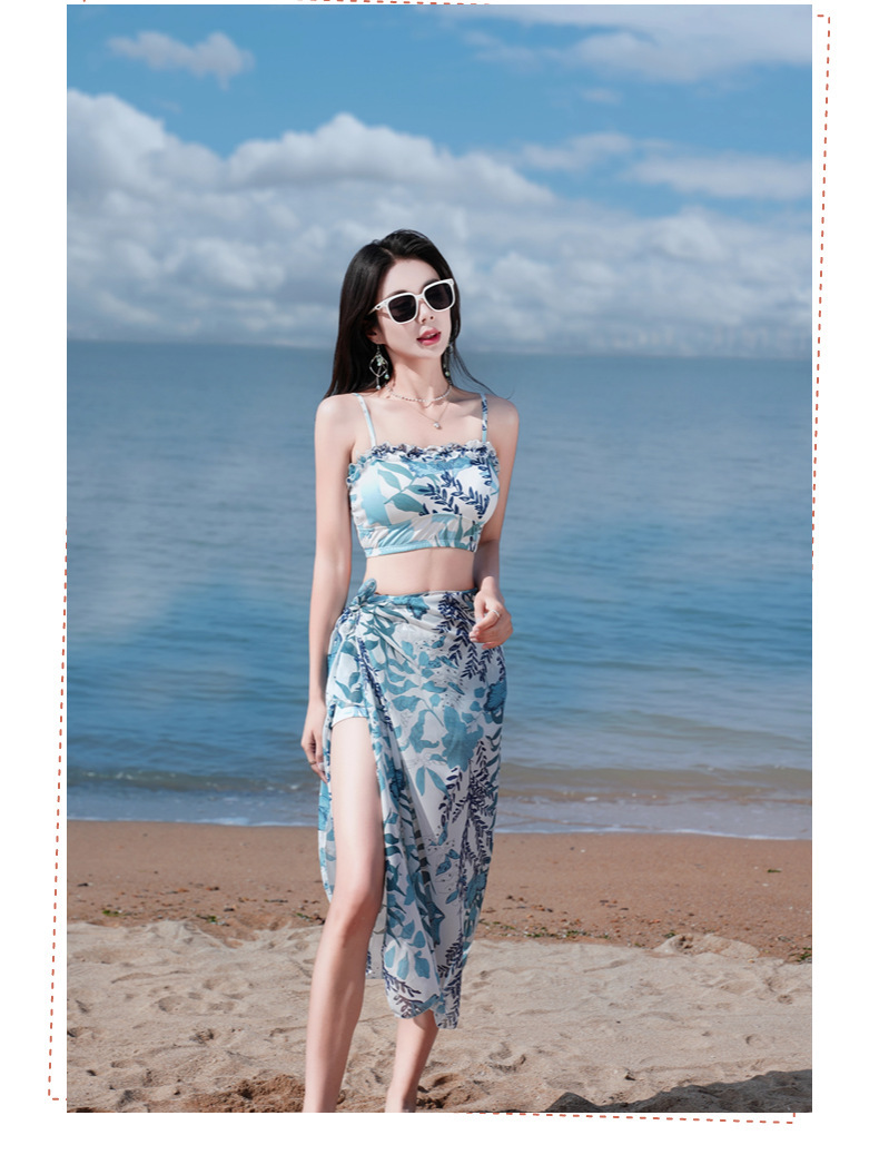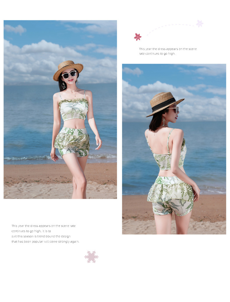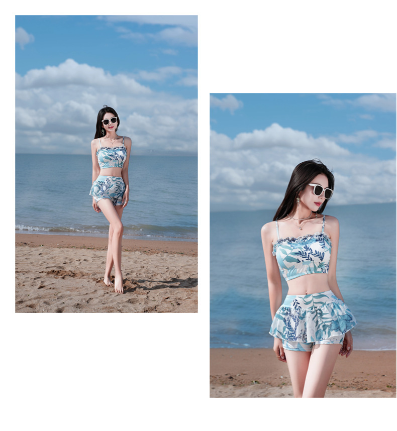 2025년 새로운 고급 휴가 사진 온천 수영복 여성 스플릿 비키니 작은 가슴 푸시업 보수적이고 섹시함