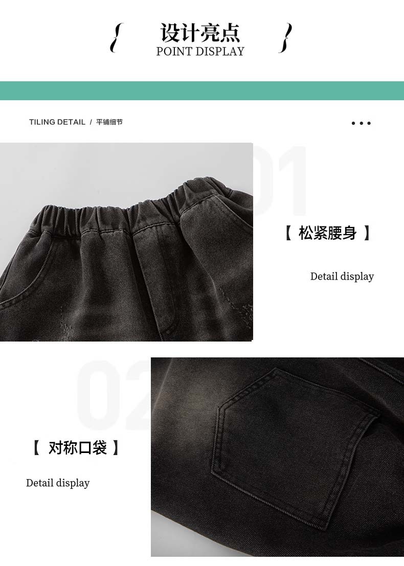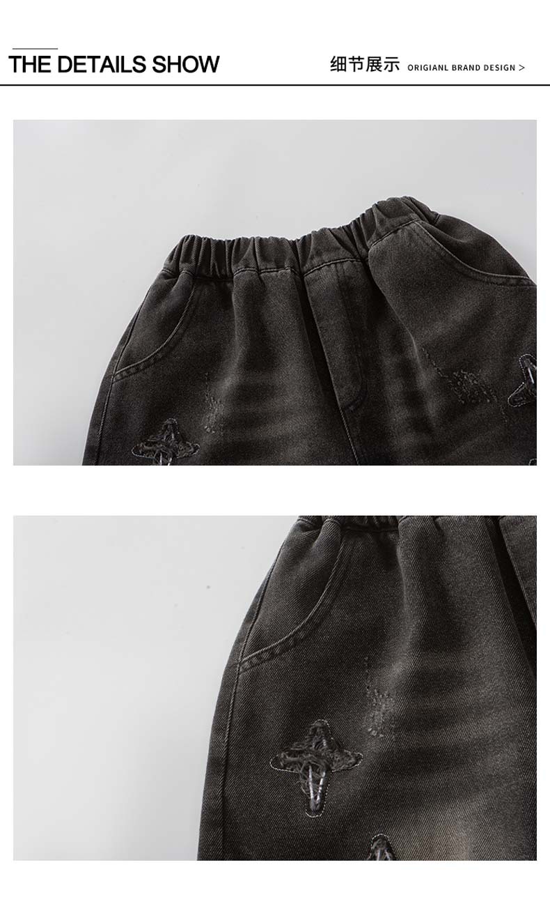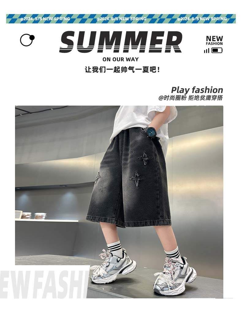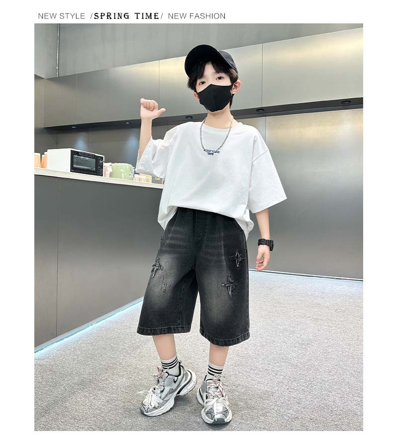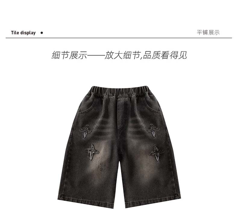 남자 큰 어린이 여름 찢어진 느슨한 데님 반바지 2025 새로운 아동복 소년 멋진 감각 얇은 표절 잘생긴 바지스토어 가기