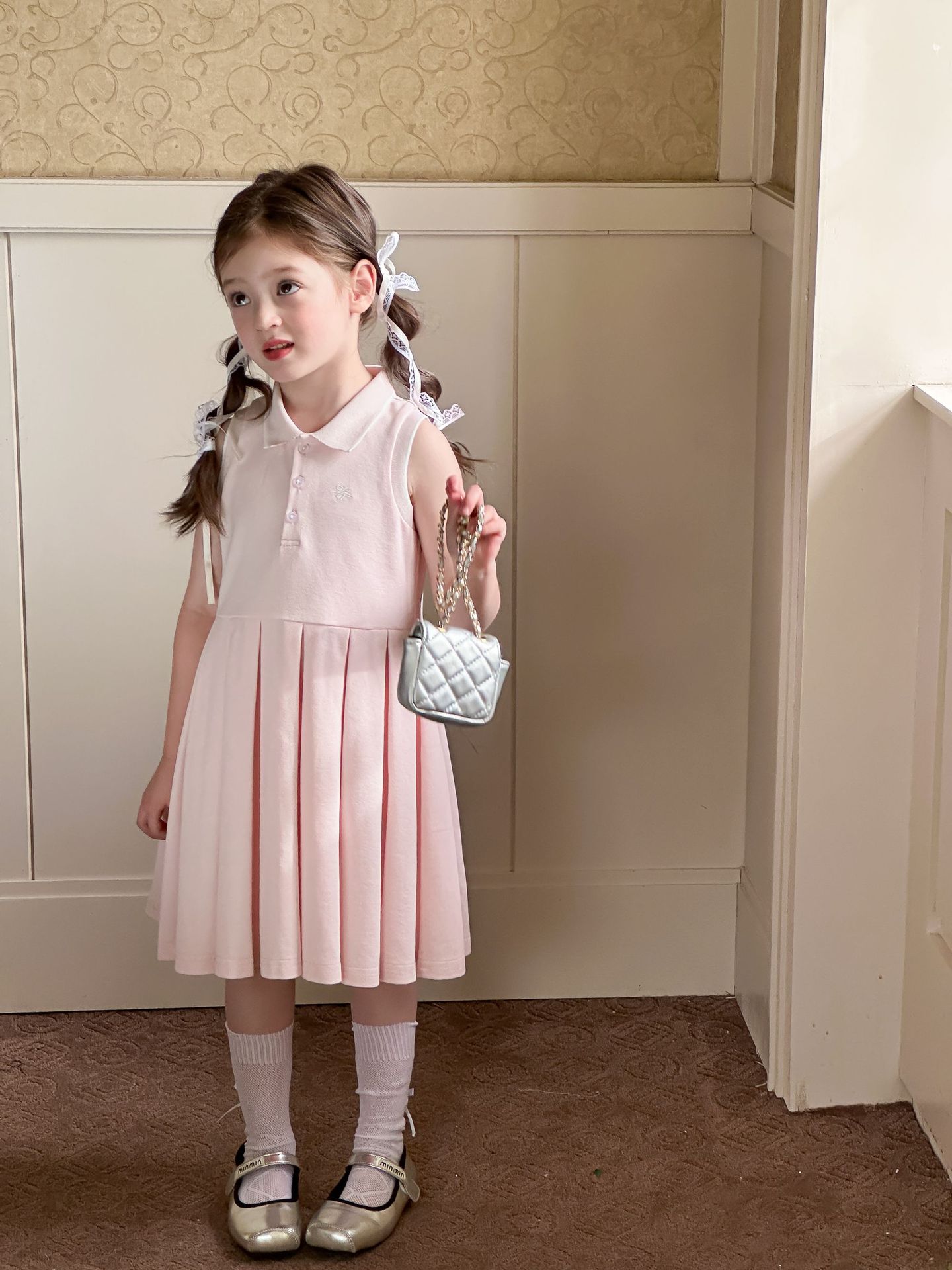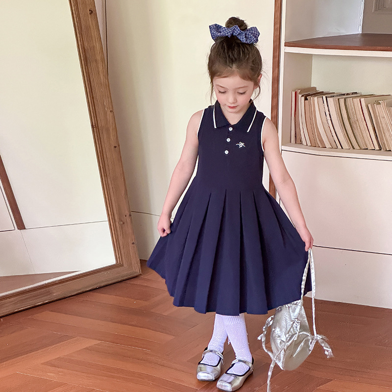 이모 베이베이 어린이 폴로 스커트 소녀 한국식 활 자수 민소매 원피스 옷깃 공주 원피스스토어 가기